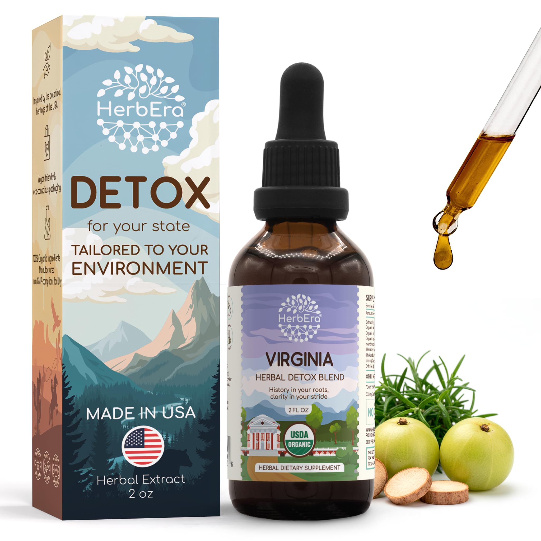 HerbEra Virginia Herbal Detox Blend - USDA Organic Extract Made in USA | Immune & Liver Support Liquid Drops | Amla Astragalus Dandelion Root Milk Thistle Sarsaparilla | 2 fl oz