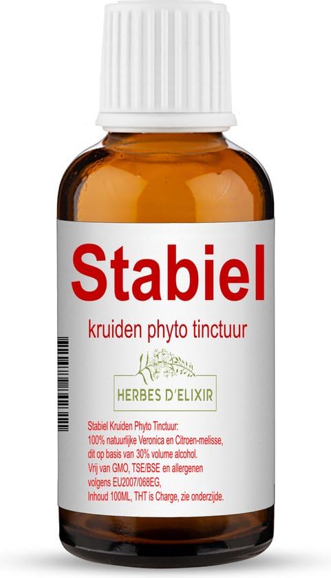 Stable herbal phyto tincture is a specially formulated tincture that supports women in menopause. This tincture is made from unique herbs, including veronica and lemon balm, and is based on a special recipe from Herbes D'elixir, a brand known for its quality and expertise in herbs and tinctures for 85 years. The tincture is natural and alcohol-based, which helps with preservation and allows you to keep it for a long time. Using this tincture is simple: you take between 15 and 30 drops, depending on your body weight, and mix it with some water. It is not necessary to take the tincture on an empty stomach, which makes it even more practical. Store the bottle in a dark place at room temperature for best results. The tincture offers several benefits, such as reducing depression and helping to stabilize mood swings, which can be especially helpful during menopause. Please note that this tincture is not a medicine and that you should always ask your doctor for advice during pregnancy. Herbes D'elixir selects its herbs on an organic basis as much as possible and ensures that the products are free of GMO, TSE BSE and allergens in accordance with EU guidelines. Do you have questions or would you like to know more? Please feel free to contact us, we will be happy to help you! INGREDIENTS Veronica and lemon balm. Alcohol, free from synthetic ingredients. INSTRUCTIONS FOR USE Take between 15 and 30 drops depending on body weight and dissolve in some water. See more✓ SAFETY AND QUALITY: Herbes D'elixir has more than 85 years of experience in making herbs and tinctures. Our products are free from synthetic substances and meet strict quality standards. If in doubt or if you are pregnant, we always recommend consulting a doctor. Choose quality and safety with our Stable Menopause herbal tincture. ✓ LONG-LASTING PRESERVATION: Thanks to the alcohol base, this tincture has a long shelf life and quality is guaranteed. The alcohol acts as a natural preservative, allowing you to enjoy the benefits longer without worrying about spoilage. Store the tincture in a dark place and benefit from the long-lasting effect. ✓ EASY TO USE: This tincture is easy to use. Take between 15 and 30 drops, depending on your body weight, and dissolve in water. This makes it easy to incorporate the tincture into your daily routine, without having to worry about complicated dosages or intake requirements. ✓ NATURAL INGREDIENTS: The Stable Menopause herbal tincture is composed of carefully selected herbs such as Veronica and lemon balm. These ingredients are known for their soothing and supportive properties, making them an excellent choice for women who need natural support during menopause. Enjoy the power of nature in every drop. ✓ SUPPORT IN MENOP: This tincture has been specially developed to support women during menopause. It helps reduce symptoms such as hot flashes and mood swings, helping you feel better during this challenging time. This natural solution is a valuable addition for any woman going through menopause.Stabiele Overgang Kruiden Tinctuur - Ondersteunt Vrouwen In De Overgang - 100 ml - Herbes D'elixir Stabiel kruiden fyto tinctuur is een speciaal samengestelde tinctuur die vrouwen in de overgang ondersteunt. Deze tinctuur is gemaakt van unieke kruiden, waaronder veronica en citroenmelisse, en is gebaseerd op een speciaal recept van Herbes D'elixir, een merk dat al 85 jaar bekend staat om zijn kwaliteit en expertise in kruiden en tincturen. De tinctuur is natuurlijk en op alcoholbasis, wat helpt bij de conservering en zorgt ervoor dat je het lang kunt bewaren. Het gebruik van deze tinctuur is eenvoudig: je neemt tussen de 15 en 30 druppels, afhankelijk van je lichaamsgewicht, en mengt dit met wat water. Het is niet nodig om de tinctuur op een lege maag in te nemen, wat het nog praktischer maakt. Bewaar het flesje op een donkere plek bij kamertemperatuur voor de beste resultaten. De tinctuur biedt verschillende voordelen, zoals het verminderen van neerslachtigheid en het helpen stabiliseren van gemoedsschommelingen, wat vooral nuttig kan zijn tijdens de overgang. Let wel op dat deze tinctuur geen medicijn is en dat je bij zwangerschap altijd advies moet vragen aan je arts. Herbes D'elixir selecteert zijn kruiden zoveel mogelijk op biologische basis en zorgt ervoor dat de producten vrij zijn van GMO, TSE BSE en allergenen volgens de EU-richtlijnen. Heb je vragen of wil je meer weten? Neem gerust contact op, we helpen je graag verder! INGREDIËNTEN Veronica en citroenmelisse. Alcohol, vrij van synthetische bestanddelen. GEBRUIKSAANWIJZING Neem tussen de 15 en 30 druppels afhankelijk van het lichaamsgewicht en los dit op in wat water. Meer bekijken✓ VEILIGHEID EN KWALITEIT: Herbes D'elixir heeft meer dan 85 jaar ervaring in het maken van kruiden en tincturen. Onze producten zijn vrij van synthetische stoffen en voldoen aan strenge kwaliteitsnormen. Bij twijfel of bij zwangerschap adviseren wij altijd om een arts te raadplegen. Kies voor kwaliteit en veiligheid met onze Stabiele overgang kruiden tinctuur. ✓ LANGDURIGE CONSERVATIE: Dankzij de alcoholbasis is deze tinctuur lang houdbaar en blijft de kwaliteit gewaarborgd. De alcohol fungeert als een natuurlijk conserveermiddel, waardoor je langer kunt genieten van de voordelen zonder dat je je zorgen hoeft te maken over bederf. Bewaar de tinctuur op een donkere plek en profiteer van de langdurige werking. ✓ GEMAKKELIJK IN GEBRUIK: Deze tinctuur is eenvoudig te gebruiken. Neem tussen de 15 en 30 druppels, afhankelijk van je lichaamsgewicht, en los dit op in water. Dit maakt het gemakkelijk om de tinctuur in je dagelijkse routine op te nemen, zonder dat je je zorgen hoeft te maken over ingewikkelde doseringen of inname-vereisten. ✓ NATUURLIJKE INGREDIËNTEN: De Stabiele overgang kruiden tinctuur is samengesteld uit zorgvuldig geselecteerde kruiden zoals Veronica en citroenmelisse. Deze ingrediënten zijn bekend om hun kalmerende en ondersteunende eigenscha