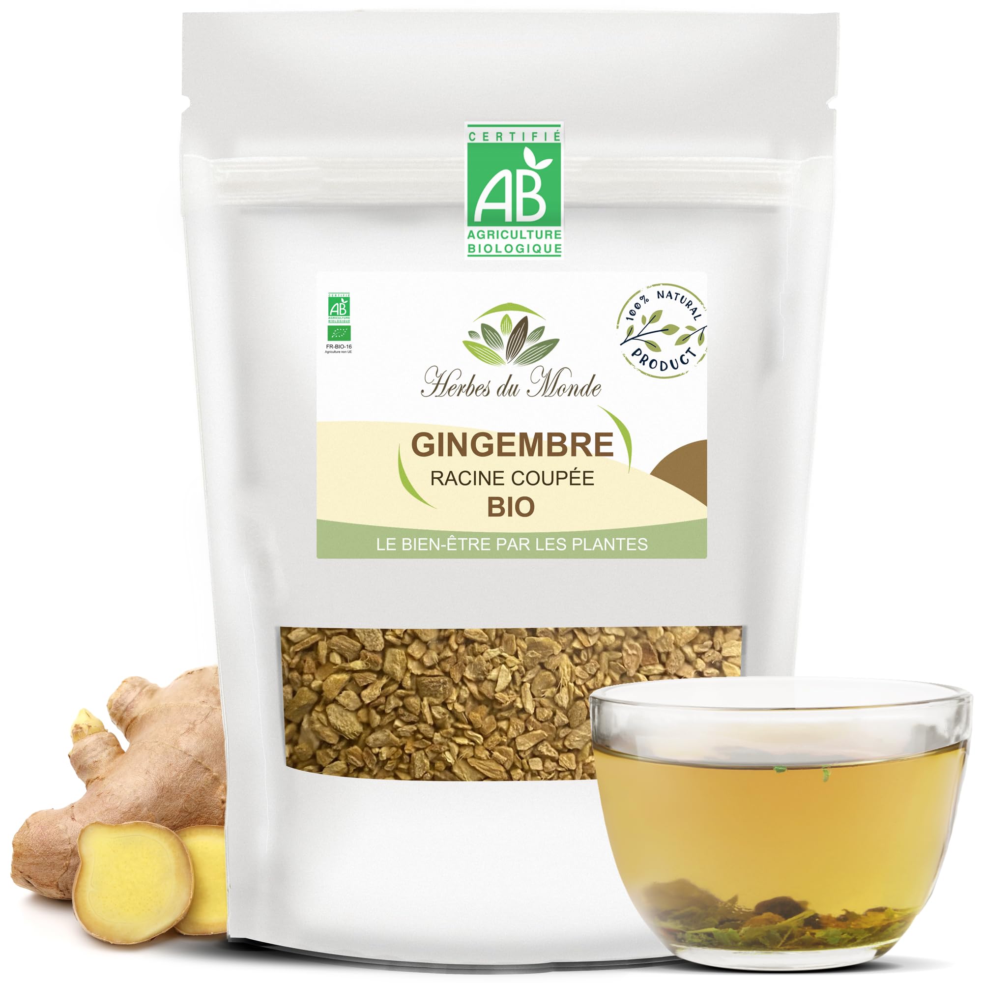 Notre Engagement – Herbes du Monde sélectionne des plantes biologiques de qualité, respectueuses de l'environnement. ? CERTIFIÉ BIOLOGIQUE – Produit 100 pur, vegan, sans additifs, sans OGM, sans colorants artificiels, sans lactose, sans soja et sans gluten. Chaque lot est rigoureusement testé par des laboratoires indépendants pour garantir une qualité irréprochable. 100 Bio Naturelle – Racine de gingembre coupée, certifiée AB, sans additifs ni conservateurs. Favorise la Perte de Poids – Aide à activer le métabolisme et la combustion des graisses. Effet Tonifiant Énergisant – Stimule naturellement le corps et réduit la fatigue. Tisane Digestive Anti-Ballonnement – Favorise une digestion légère et confortable.