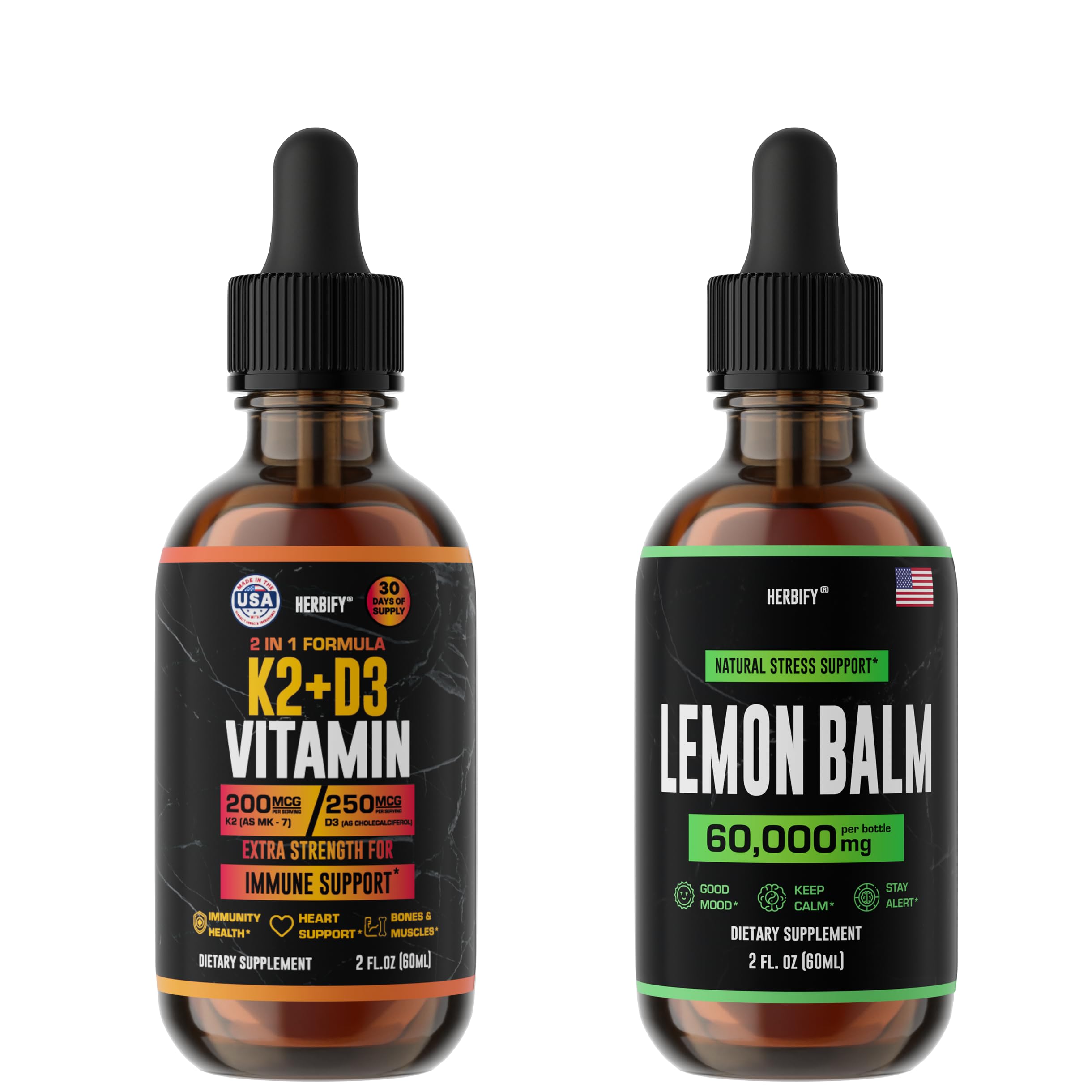 HERBIFY Bundle - K2 and D3 Drops & Lemon Balm Tincture - Bone Strength & Mood Boost