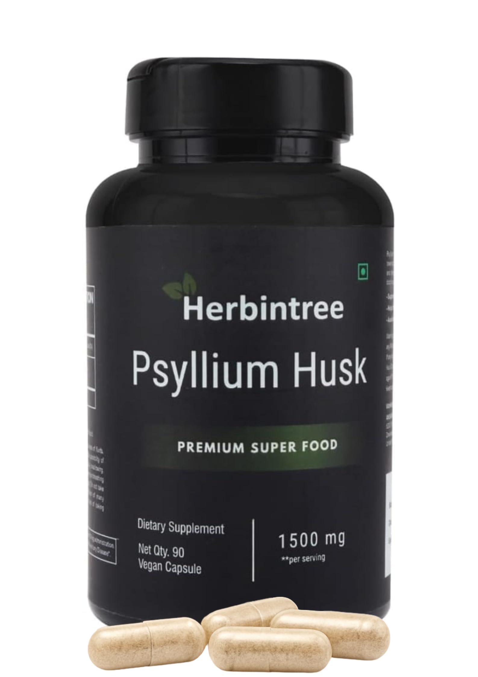 HERBINTREE Organic Psyllium Husk Capsules 1500mg | High Fiber Supplement for Digestive Health Gut Cleanse & Bowel Regularity | Gluten-Free Non-GMO Vegan 90 Capsules