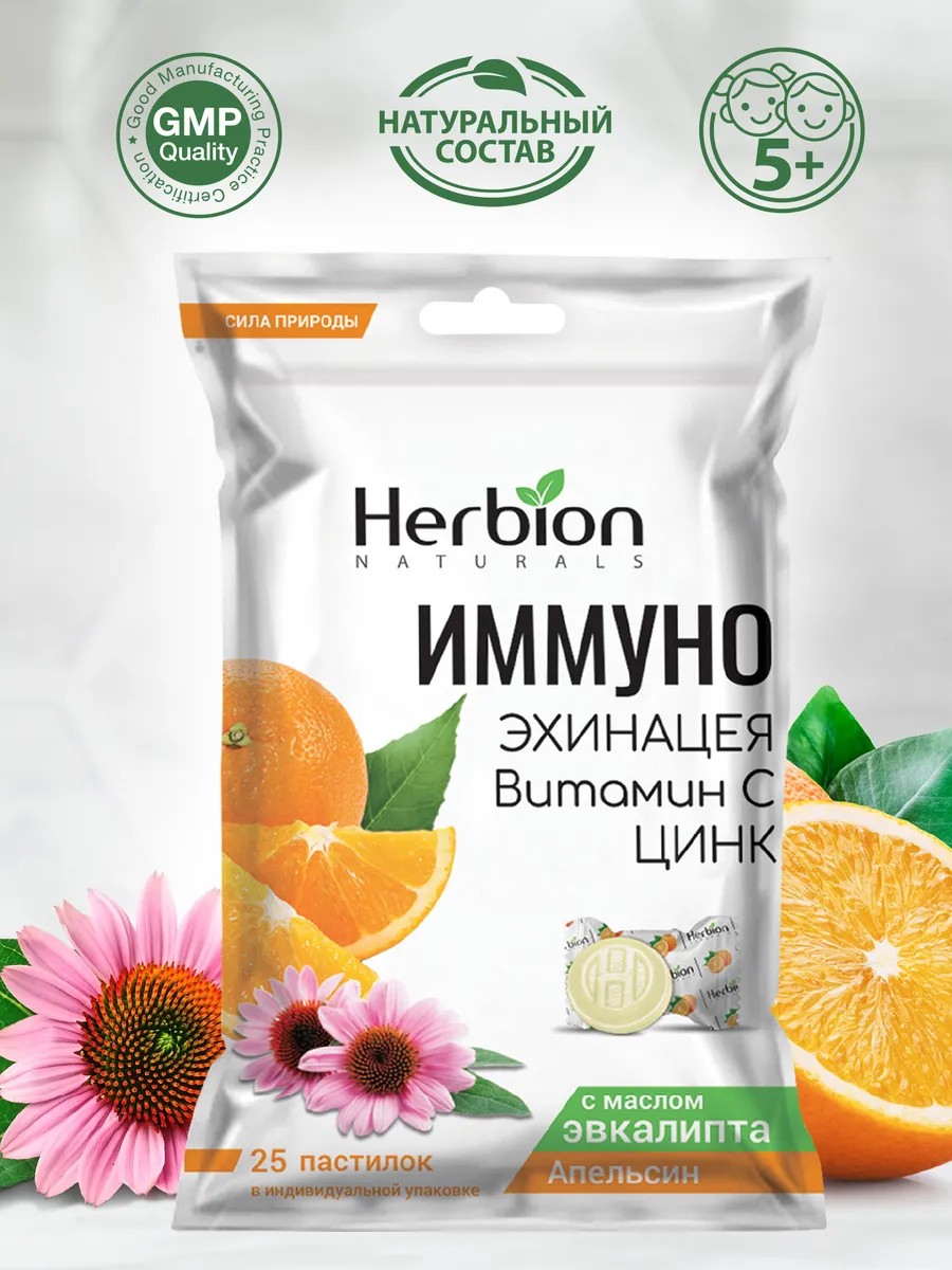 Herbion БАД "ИММУНО Эхинацея, Витамин С, Цинк, Апельсин", 25 шт