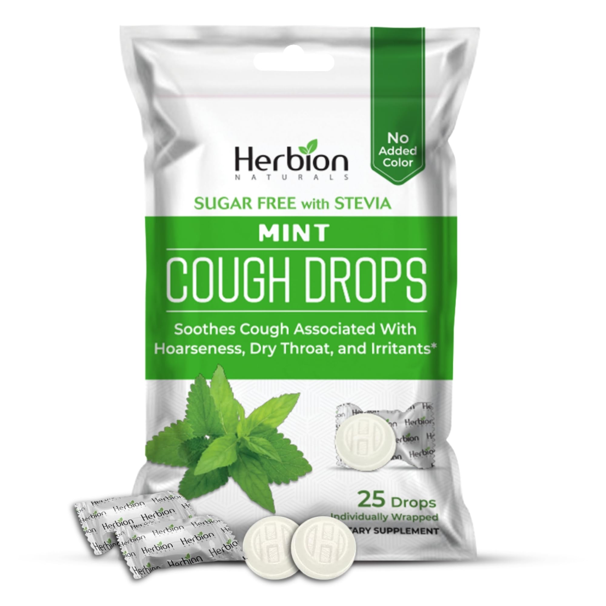 YUMMY MINT FLAVOR:These all-natural Cough Drops come in a delightful natural mint flavor that tastes like an absolute treat! Just pop a Cough Drop in your mouth, let it dissolve, and enjoy the relief. FOR ADULTS CHILDREN:Our good-tasting, soothing lozenges are suitable for adults and children over 6 years of age and are convenient anytime, anywhere. ALL-NATURAL COUGH DROPS:Our Cough Drops are free of gluten, nuts, artificial flavors and colors, which makes them safe and effective for daily intake. SUGAR-FREE FORMULA:Our sugar-free cough drops are specially prepared with low-calorie sweetener Stevia and it is safe for diabetics. WHOLESOME INGREDIENTS:Our Cough Drops contain the goodness of Malabar Nut, Large Leaf Geiger Tree, Long Pepper, Hyssop, Greater Galangal, Licorice, and Sweet Violet. QUICK COUGH RELIEF:Herbion Naturals Cough Drops contain a wholesome blend of herbs with menthol to help relieve cough.
