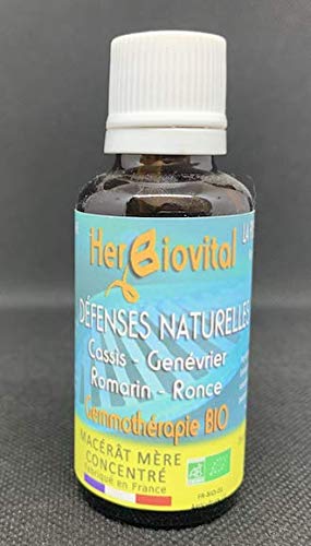 Stimulates and improves the functioning of the metabolism, Strengthens the body's natural defenses, Products from Organic Farming - Made in France, A course of 28 consecutive days at a rate of 10 to 15 drops per day, Product perfectly suited to the vegan public. INGREDIENTS Alcohol (30 vol.), Water, Vegetable Glycerin, Blackcurrant leaf bud (Ribes nigrum), Young juniper shoots (Juniperus communis), Young rosemary shoots (Rosmarinus officinalis), Young bramble shoots (Rubus fructicosus).Herbiovital - Organic Natural Defenses - Metabolism-Stimulating Macerate - Concentrated Gemmotherapy Complex - 30 ml - Stimulates metabolism - Made in France. Stimule et améliore le fonctionnement du métabolisme, Renforce les défenses naturelles de l'organisme, Produits issus de l'Agriculture Biologique - Fabriqué en France, Une cure de 28 jours consécutifs à raison de 10 à 15 gouttes par jour, Produit parfaitement adapté au public végan. INGRÉDIENTS Alcool (30 vol.), Eau, Glycérine Végétale, Bourgeon de feuille de cassis (Ribes nigrum), Jeunes pousses de genévrier (Juniperus communis), Jeunes pousses de romarin (Rosmarinus officinalis), Jeunes pousses de ronce (Rubus fructicosus).Herbiovital - Défenses naturelles Bio - Le Macérât stimulant du métabolisme - Complexe de Gemmothérapie Concentrée - 30 ml - Stimule le fonctionnement du métabolisme - Fabriqué en France.