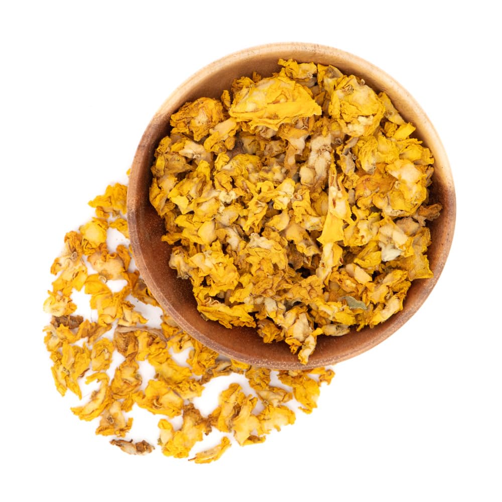 Herbis Natura Mullein Flowers The flowers have a slightly fruity taste. They are suitable for making lemonades, syrups, or as a garnish for sweet dishes. Mullein flowers, also known as woolly mullein, are fascinating plants with numerous uses. With their yellow flowers and impressive growth heights of up to 2 meters, they are eye-catching additions to gardens and natural landscapes. The flowers contain valuable ingredients such as saponins, mucilage, and iridoid glycosides, which are believed to have anti-inflammatory and soothing properties. Mullein flowers are used in natural medicine for coughs, respiratory problems, inflammatory skin conditions, diarrhea, and cramps.