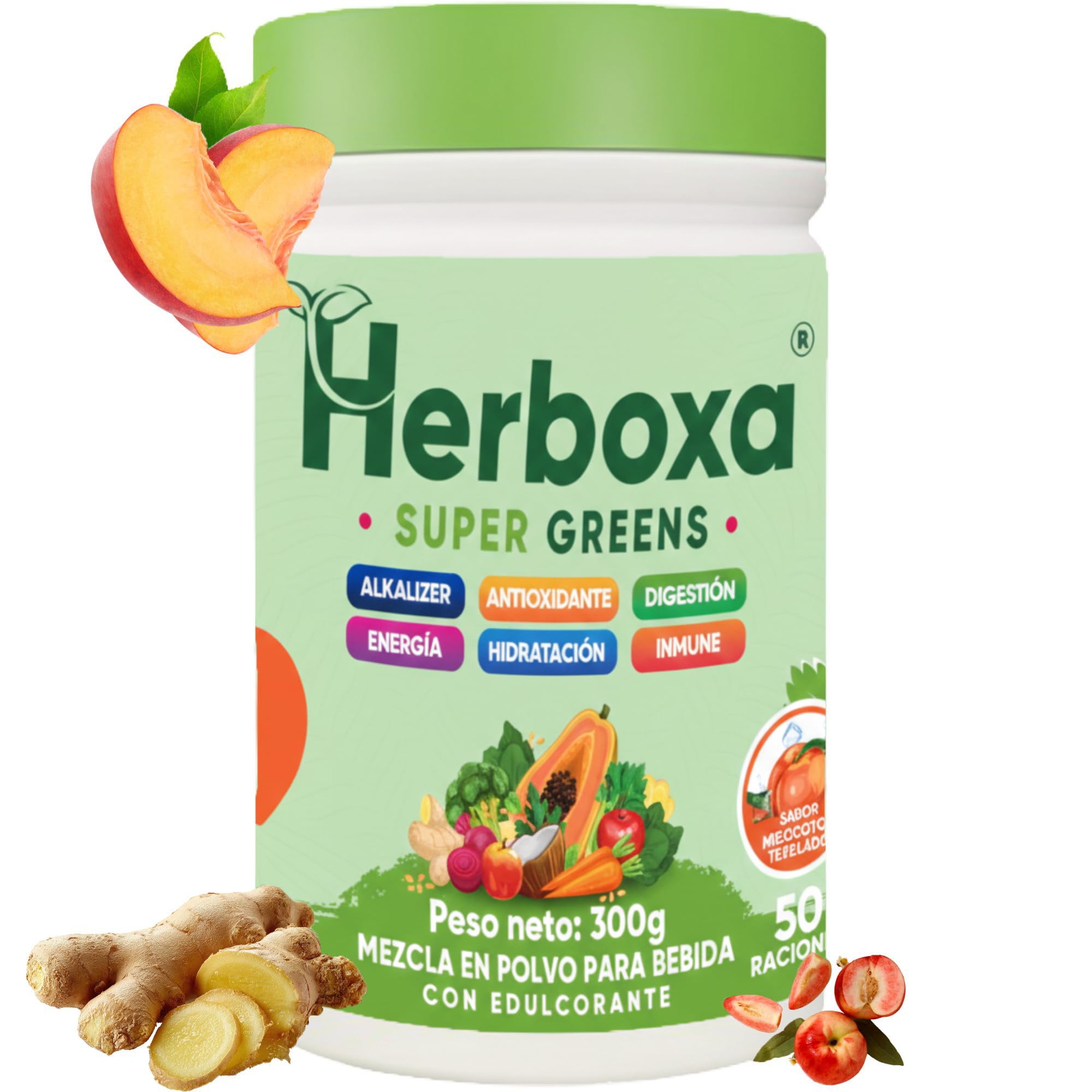 Zinc supports energy metabolism through its role in the metabolism of carbohydrates, lipids, and macronutrients. (Energy) Zinc contributes to normal nutrient metabolism and supports digestive health. (Digestion) Zinc helps protect cells from oxidative stress. (Antioxidant) Zinc contributes to the maintenance of normal skin, as the skin plays a central role in maintaining fluid balance. (Hydration) Zinc contributes to the normal function of the immune system. (Immune) Zinc contributes to normal acid-base metabolism. (Alkalizing). This is found in every serving of fiber complex: supports digestion and promotes a healthy gut flora. Green superfood complex: provides essential nutrients and natural energy from plants such as kale, spirulina, and acai berries. Lactobacillus rhamnosus: supports the balance of your gut flora and promotes your inner well-being. Essential Zinc: Contributes to cell protection, acid-base balance, and immune function. Enzyme Complex: Aids digestion and nutrient absorption with natural enzymes. Protect your cells with powerful antioxidants. Free radicals appear daily in our bodies and can damage cells, whether due to stress, environmental factors, or physical exertion. Antioxidants such as zinc are scientifically proven to help protect cells against oxidative stress. Powerful Defenses: Supports the immune system: Zinc contributes to the normal function of the immune system and strengthens your body's natural defenses. Cellular protection: Zinc protects cells from oxidative stress caused by free radicals and helps your body defend itself against external stressors. Balance and resilience: Zinc plays a key role in maintaining a balanced immune system, helping you stay healthy and vital all year round. Radiant beauty from within For beautiful skin: Zinc contributes to the maintenance of normal skin, thus promoting a fresh and radiant complexion. Healthy hair and nails: Zinc is essential for maintaining normal hair and nails. It strengthens the hair structure and promotes strong, healthy nails. Natural balance: Zinc protects cells from oxidative stress, which helps better protect skin, hair, and nails from environmental aggressors. Choose Herboxa Super Green to support natural beauty from within – with every serving, a step towards a radiant appearance, a healthy complexion, and self-confidence! Pure plant power: Superfoods at their finest. Our green superfood complex combines nature's best ingredients: spirulina, chlorella, kale, acai berries, wheatgrass, and much more. This powerful blend provides essential phytonutrients and helps your body function optimally for an active and fulfilling life. Optimal nutrient absorption thanks to the enzyme complex. With a carefully crafted blend of enzymes such as amylase, lipase, cellulase, and lactase, our formula helps your body digest and absorb nutrients more efficiently. The perfect support for your everyday life. Energy and metabolism made easy . Get the energy you need: zinc contributes to the normal metabolism of carbohydrates and fatty acids, while green superfoods such as kale, broccoli, and matcha provide natural power. This combination not only supports your energy balance but also helps you maintain an active lifestyle—without artificial stimulants. Powerful antioxidant defense . Protect your cells against the challenges of daily life: zinc is scientifically proven to help protect cells from oxidative stress. Our blend combines zinc with antioxidant superfoods such as spirulina, chlorella, and rosehip, which actively help your body fight free radicals. The result? More protection , more energy , and a fresh, vibrant feeling . Why Herboxa Super Greens is the best choice for your digestion : Our unique fiber complex contains valuable ingredients such as chicory root, known for its prebiotic properties and for promoting the growth of healthy gut bacteria. Combined with Lactobacillus rhamnosus, a highly effective probiotic strain, our formula promotes a balanced gut flora and supports smooth digestion. Perfect for anyone who wants to add an extra serving of fiber and probiotics to their diet for greater lightness and well-being every day. Discover the perfect synergy of high-quality fiber, powerful superfoods, healthy gut bacteria, and essential nutrients—carefully combined to enrich your daily diet and support your well-being over the long term .Le zinc favorise le métabolisme énergétique grâce à son rôle dans le métabolisme des glucides, des lipides et des macronutriments. (Énergie) Le zinc contribue à un métabolisme nutritif normal et favorise la santé digestive. (Digestion) Le zinc contribue à protéger les cellules contre le stress oxydatif. (Antioxydant) Le zinc contribue au maintien d'une peau normale car la peau joue un rôle central dans le maintien de l'équilibre hydrique. - (Hydratation) Le zinc contribue au fonctionnement normal du système immunitaire. (Immune) Le zinc contribue à un métabolisme acido-basique normal. (Alcalinisant). Cela se trouve dans chaque portion de complexe de fibres : favorise la digestion et favorise une flore intestinale harmonieuse. Complexe de superaliments verts : fournit des nutriments essentiels et de l'énergie naturelle provenant de plantes telles que le chou frisé, la spiruline et les baies d'açaï. Lactobacillus rhamnosus : soutient l'équilibre de votre flore intestinale et favorise votre bien-être intérieur. Zinc Essentiel : contribue à la protection des cellules, à l'équilibre acido-basique et à la fonction immunitaire. Complexe enzymatique : aide à la digestion et à l'absorption des nutriments avec des enzymes naturelles. Protégez vos cellules avec de puissants antioxydants Les radicaux libres apparaissent quotidiennement dans notre corps et peuvent endommager les cellules, que ce soit en raison du stress, des facteurs environnementaux ou du stress physique. Les antioxydants tels que le zinc aident scientifiquement à protéger les cellules c