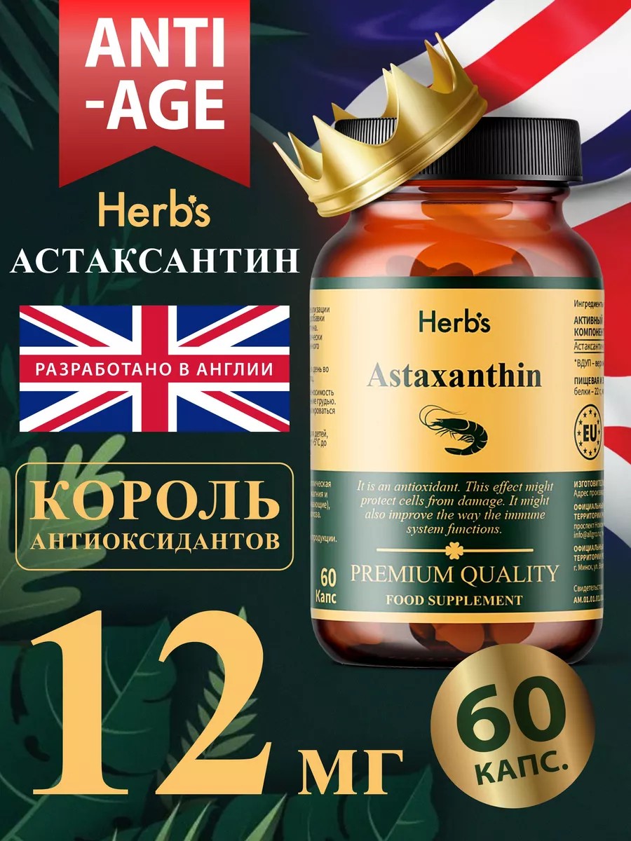 Dietary supplement "Astaxanthin." 364 mg capsules containing the antioxidant astaxanthin. Antioxidants play a vital role in maintaining our health by protecting the body from free radicals that can cause harm. Is there an antioxidant that surpasses all others? The answer can be found in the depths of the ocean, where astaxanthin lives. Astaxanthin is a xanthophyll carotenoid, a naturally occurring substance. Astaxanthin was first isolated from lobster meat in 1938. Natural sources of astaxanthin include algae, yeast, salmon, trout, krill, shrimp, and crayfish. However, technology advances, and leading European scientists and doctors have learned to synthesize astaxanthin in the laboratory, such as our dietary supplement Astaxanthin Herbs. Numerous studies show that synthetic astaxanthin is just as effective as astaxanthin extracted from algae and marine life, while being less expensive to produce. Astaxanthin is a lipophilic compound, meaning it dissolves readily in oils. Due to its chemical structure, astaxanthin is more potent than other antioxidants. It is able to bind internal and external cell membranes, making it effective in combating free radicals. In fact, astaxanthin is 550 times more potent than vitamin E and 6,000 times more potent than vitamin C. It is also 10 times more effective than zeaxanthin, lutein, canthaxanthin, and beta-carotene. However, astaxanthin's bioavailability is not very high. To improve its absorption, it is recommended to take it with dietary oils, such as fish oil, which is also a source of omega-3. This allows the body to better absorb astaxanthin and reap its beneficial properties. Astaxanthin's antioxidant effect stems from its ability to inhibit oxidation. The human body constantly produces free radicals and reactive oxygen species, which can damage cells and lead to various diseases. Antioxidants like astaxanthin help neutralize these free radicals and protect the body from damage. Carotenoids, which include astaxanthin, have unique biological benefits due to their chemical structure and interaction with cell membranes. Astaxanthin, due to its high antioxidant activity, has been nicknamed the "king of carotenoids." It surpasses other carotenoids, such as lutein, lycopene, alpha-carotene, and beta-carotene. Thus, astaxanthin is a powerful antioxidant that can be beneficial for maintaining overall health. It is important to note that the effectiveness of astaxanthin can be increased when combined with dietary oils, and therefore it is recommended to take it together with fish oil or other sources of omega-3.
