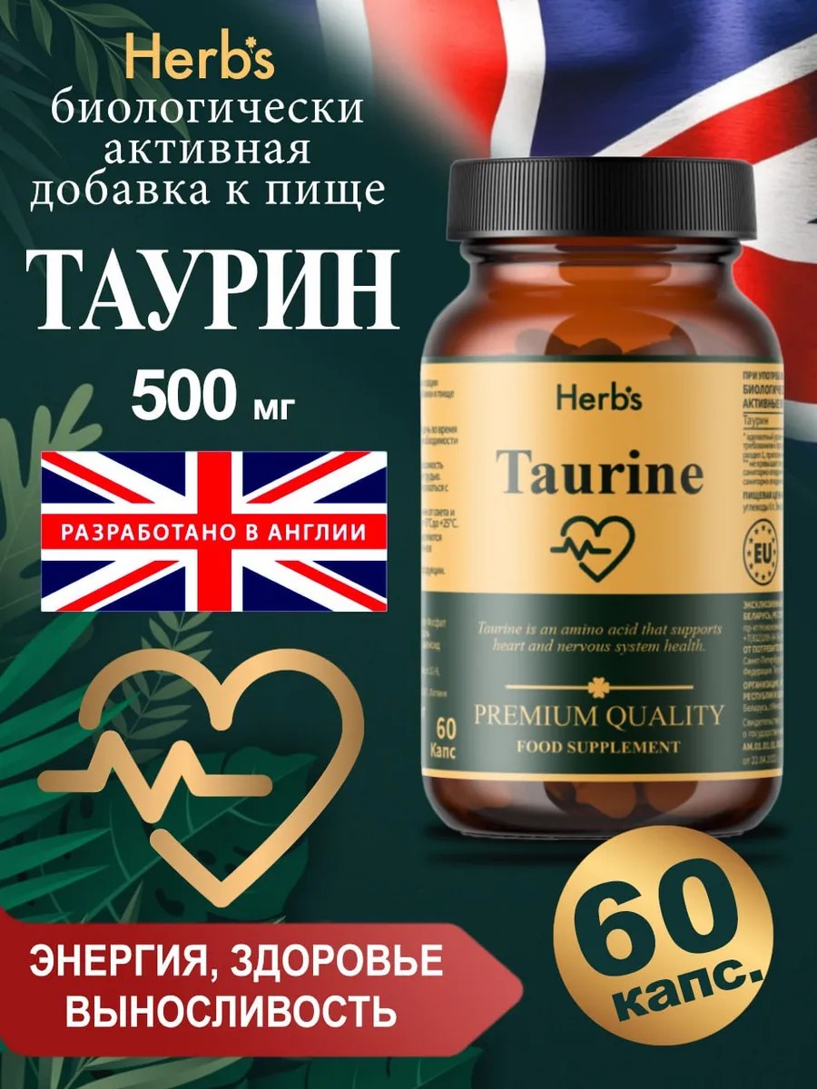 Herbs БАД к пище Таурин (Taurine ), 60 капсул