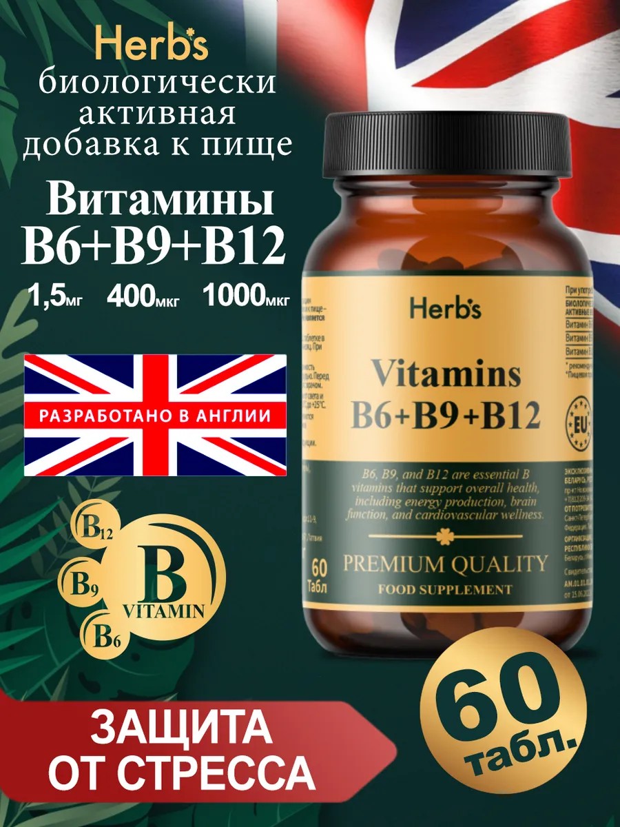 Herbs БАД к пище Витамин В6 + В9 + В12, 60 капсул