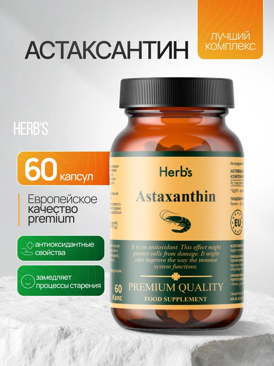 Herb's "Астаксантин" - – это высокоэффективная биологически активная добавка на основе природного каротиноида, известного как "король антиоксидантов".