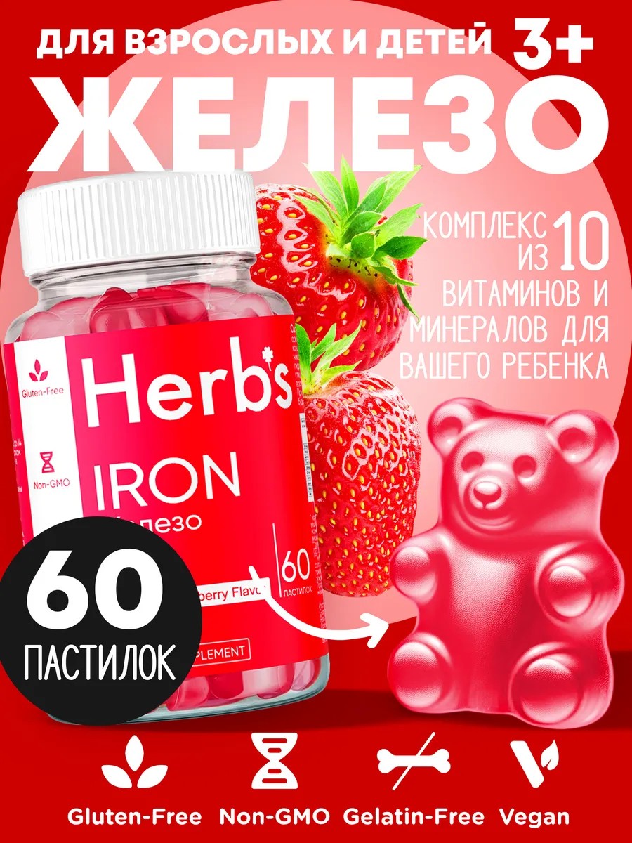 Herbs Железо, мармеладные пастилки, 60 штук