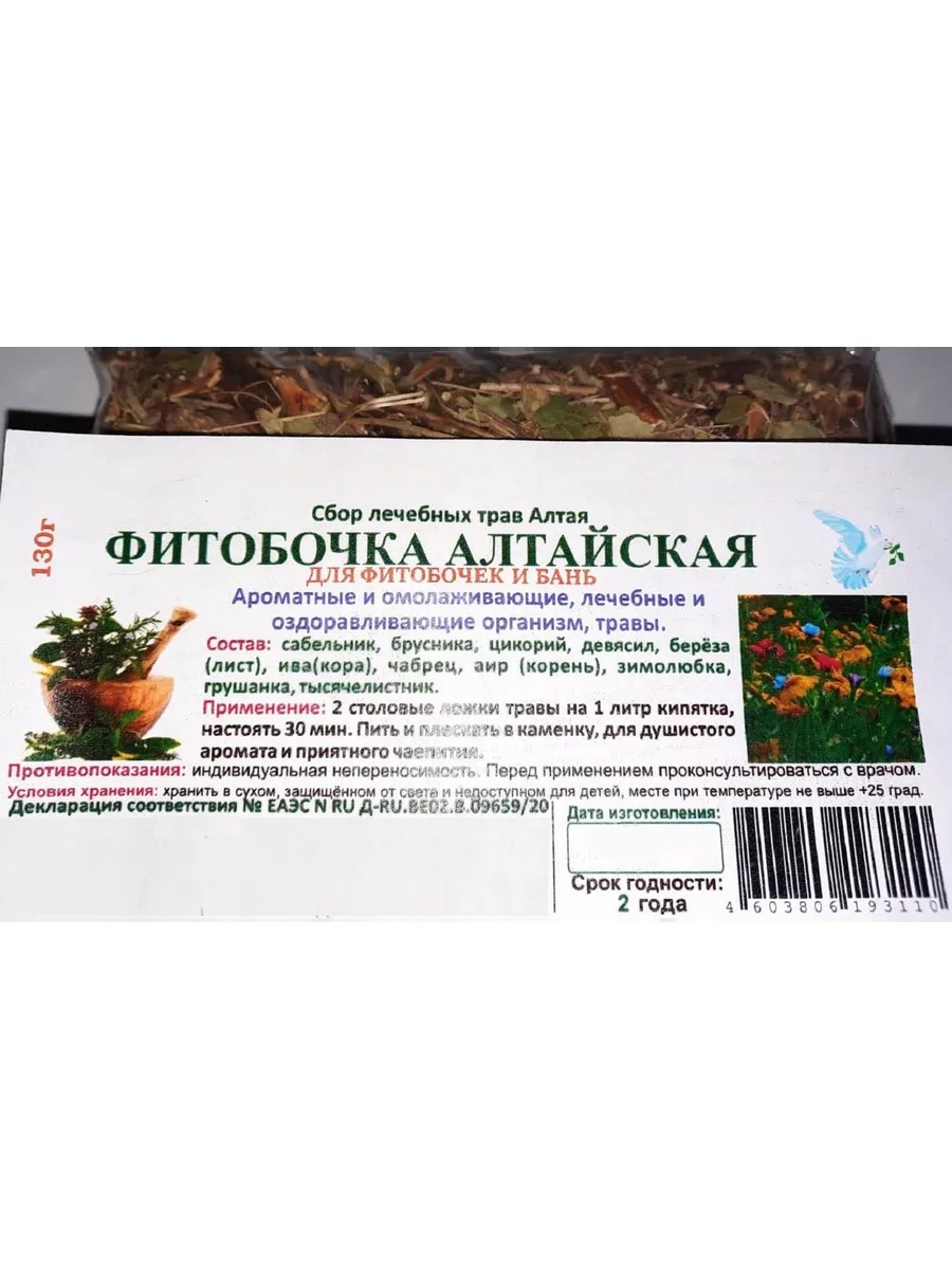 CompositionEchinacea, golden root, Altai crowberry, wild strawberry, immortelle, chamomile, calendula; yarrow, bilberry leaf, fireweed, sunflower, mint, oregano, thyme, blackberry; raspberry, St. John's wort, plantain, goldenrod, sea buckthorn leaf, meadowsweet, Kuril tea