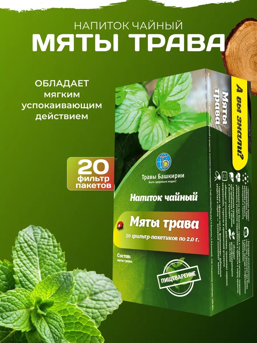 Ароматный и освежающий чайный напиток, который обладает душистым ароматом, мягким успокаивающим действием.Листья мяты перечной богаты эфирными маслами, в том числе ментолом.Мята снижает раздражительность, улучшает сон, дарит спокойствие и безмятежность, прекрасно освежает и одновременно успокаивает. Мята применяется для лечения простудных заболеваний, бронхитах, ларингитах, болях в горле и заболеваниях верхних дыхательных путей.Поможет справится с головной болью, нервными возбуждением, бессонницей и депрессией.Избавит от запоров и колик, горечь мяты посодействует оттоку желчи и очистки печени.Стабилизирует сердечный ритм, расширит сосуды и поможет при повышенном давлении.
