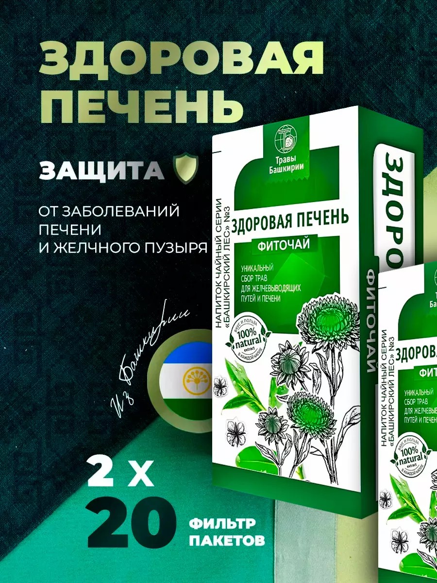 Healthy Liver herbal tea from Bashkiria Herbs is an effective protective and rehabilitative remedy for the liver during extensive drug treatment and intoxication. This herbal tea is recommended for liver and gallbladder diseases of various etiologies, including acute and chronic hepatitis, cholecystitis, cholangitis, cirrhosis, and liver cancer. This liver-based tea has antispasmodic, anti-allergic, and anti-inflammatory properties. It increases bile secretion. Contraindications for taking Healthy Liver tea: individual intolerance to any of the ingredients, pregnancy. Directions for use: Adults and children 12 years and older: Pour 200 ml of boiling water over 1 tea bag. Let steep for 20 minutes, pressing down on the bag periodically with a spoon. Drink hot, 1/2 to 1/3 cup 3-4 times daily before meals. The course of treatment is 21 days.