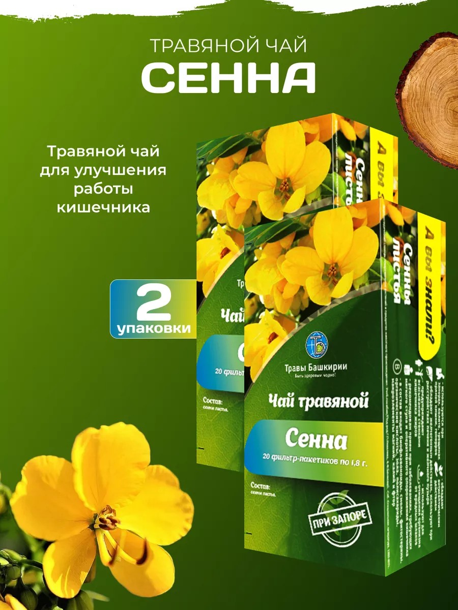 ТРАВЫ БАШКИРИИ Чай травяной слабительный Сенна для кишечника 2 шт