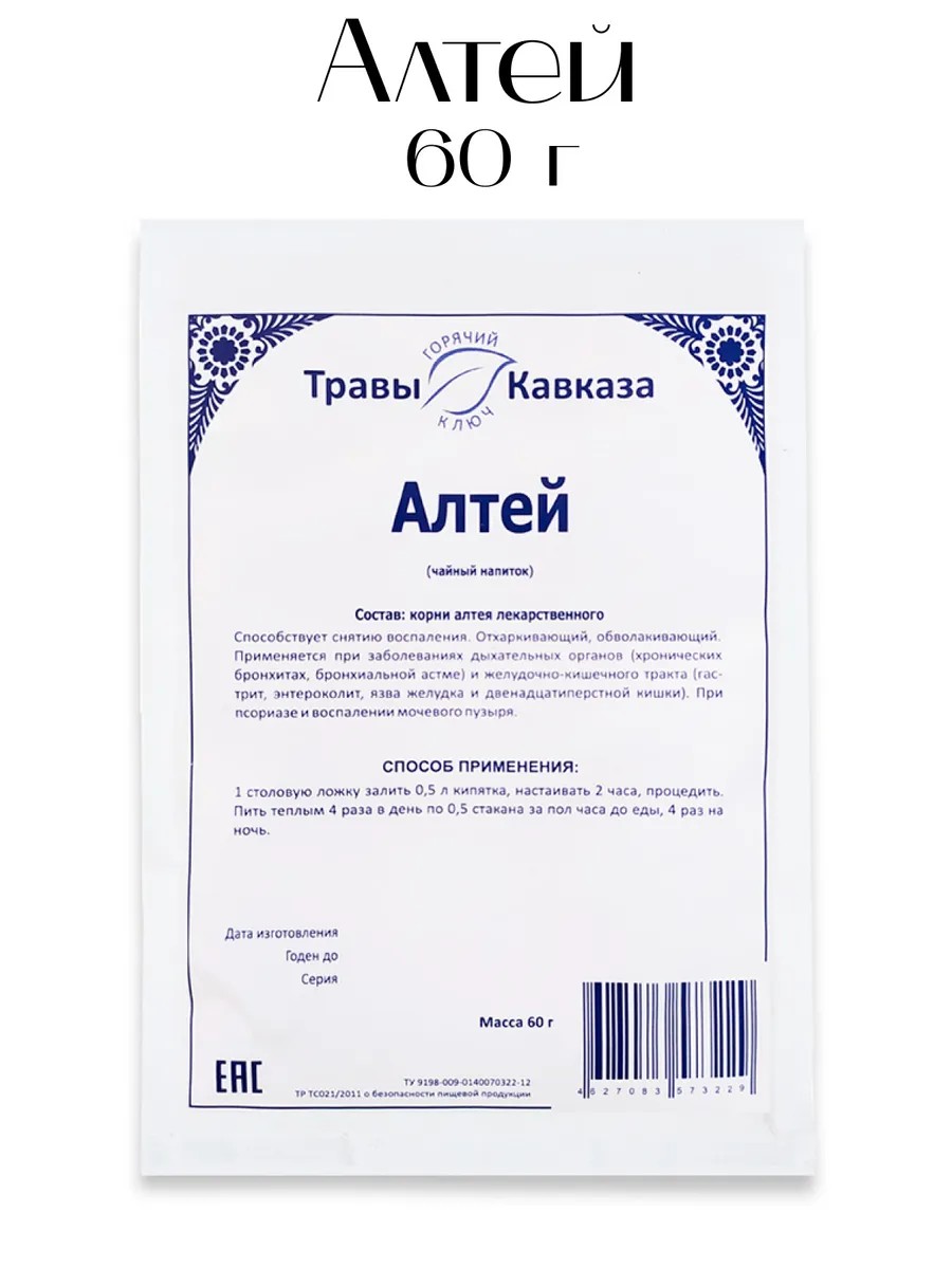 | Состав травяного сбора | корни алтея лекарственного |