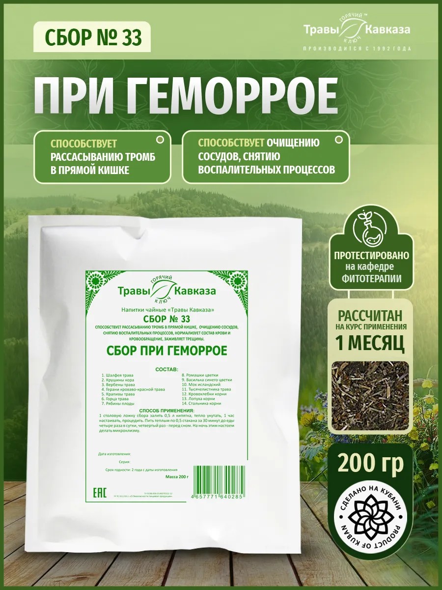 Травы Кавказа Травы Кавказа. Сбор № 33 При геморрое, 200 гр.