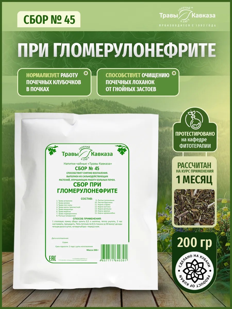 Травы Кавказа Сбор № 45 При гломерулонефрите , 200 гр.