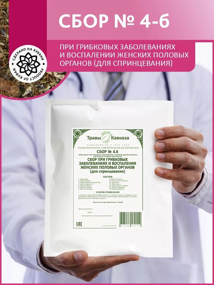 Сбор № 4-б При грибковых заболеваниях и воспалении женских половых органов (для спринцевания)