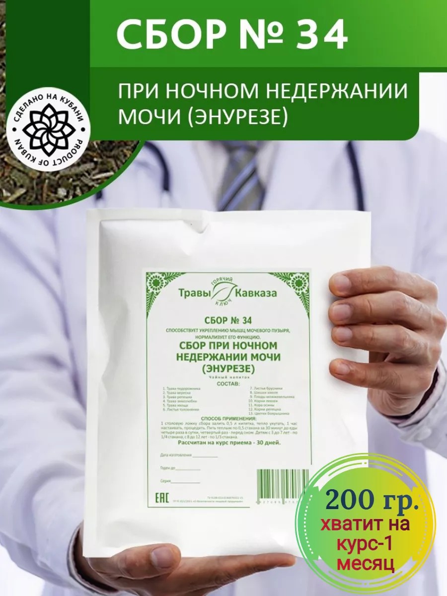 Травяной сбор 34 при ночном недержании мочи 200 гр