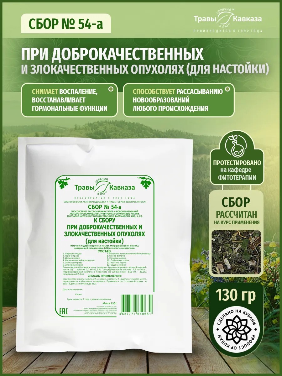54a from "Herbs of the Caucasus" is used for benign and malignant tumors.
