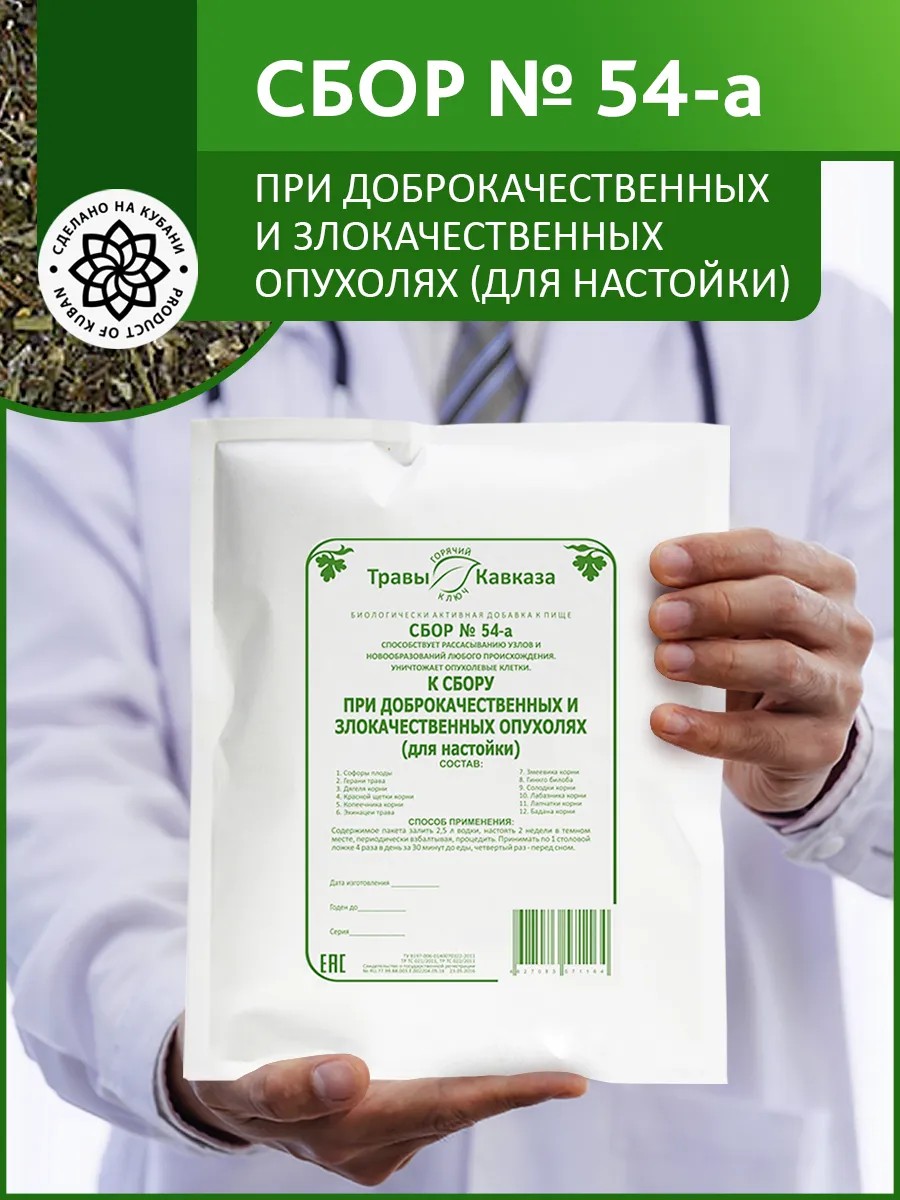 | Полное наименование товара | Травяной сбор №54а К сбору при доброкачественных и злокачественных опухолях (для настойки), 130 гр |