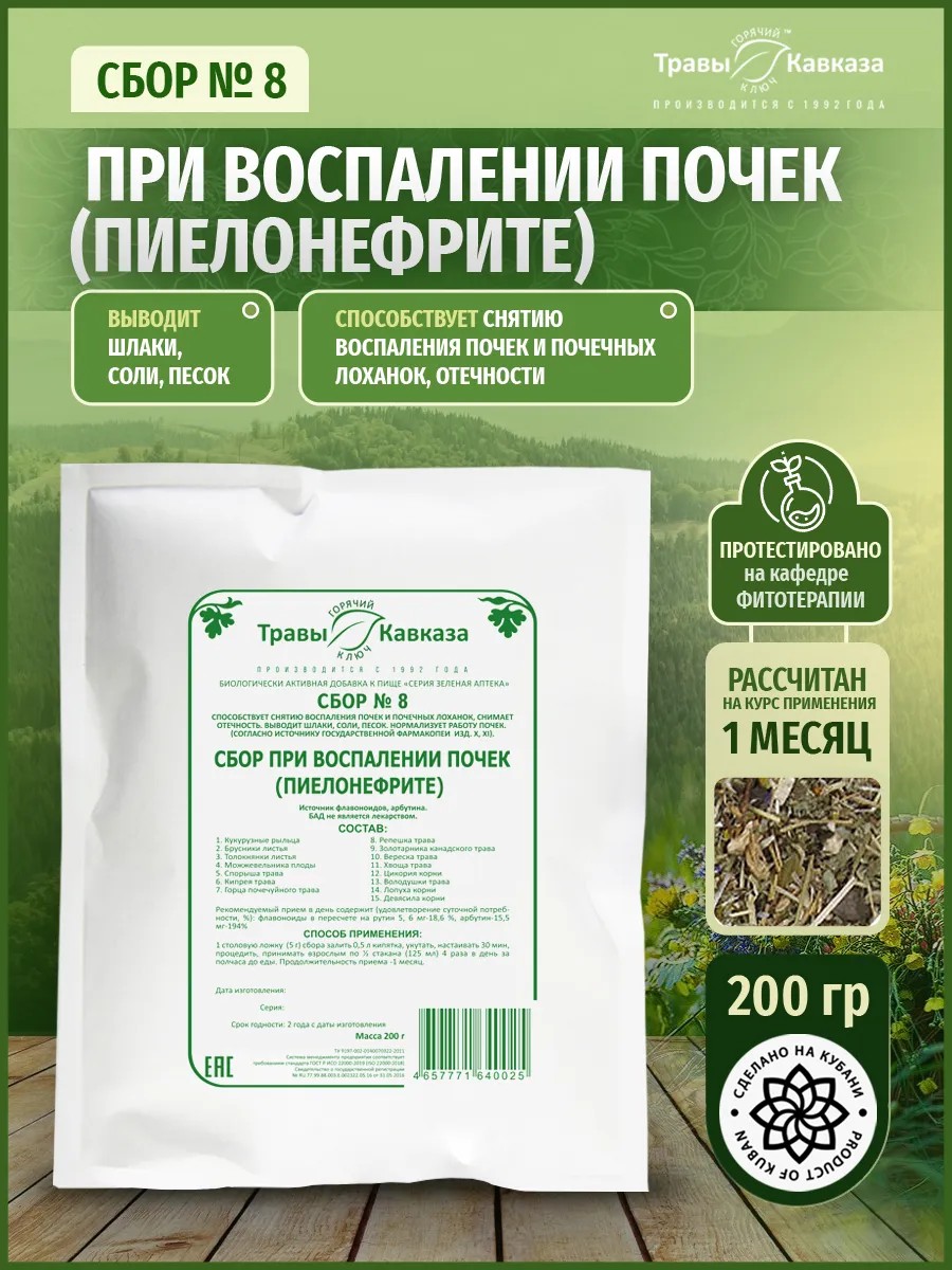 Сбор № 8 является натуральным средством для поддержки здоровья почек при воспалительных процессах и помогает улучшить общее состояние организма.