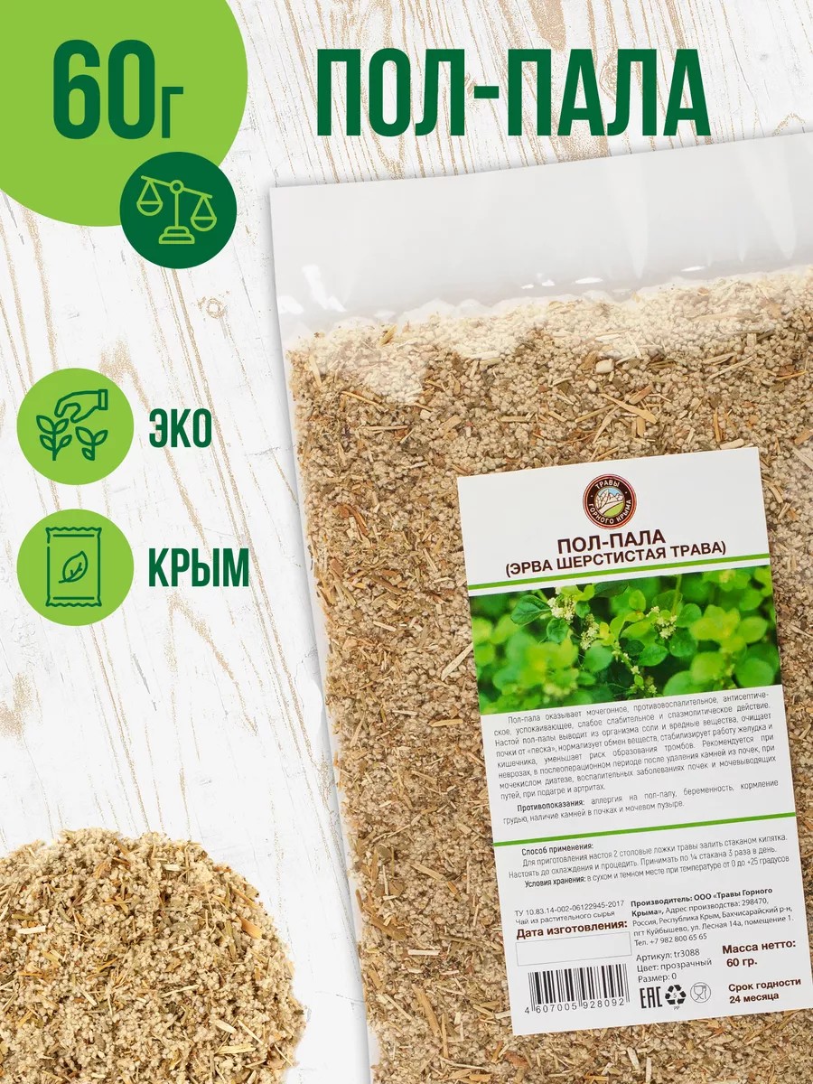 Настой пол-палы выводит из организма соли и вредные вещества, очищает почки от песка, нормализует обмен веществ, стабилизирует работу желудка и кишечника, уменьшает риск образования тромбов.Рекомендуется при неврозах, в послеоперационном периоде после удаления камней из почек, при мочекислом диатезе, воспалительных заболеваниях почек и мочевыводящих путей, при подагре и артритах.пол-пала эрва шерстистая антипаразитарный байкал байкальский бани монастырский витаминный витамины волос гинекологический горного детский диабет диких дикорастущие желудка желудочно желчегонный женский женщин здоровый здоровья измельченный кавказа кавказские кишечника крыма крымские крымский лекарственные лечебные листовой листья луговые мочегонный набор напиток натуральный очищения пищеварения поджелудочной похудения антистресс детокс почечный рассыпной растения российских самогона сбор сибири сна сон средства сухой сушеные трав травы травяной успокаивающий успокоительный фиточай цветки целебные чай чайный