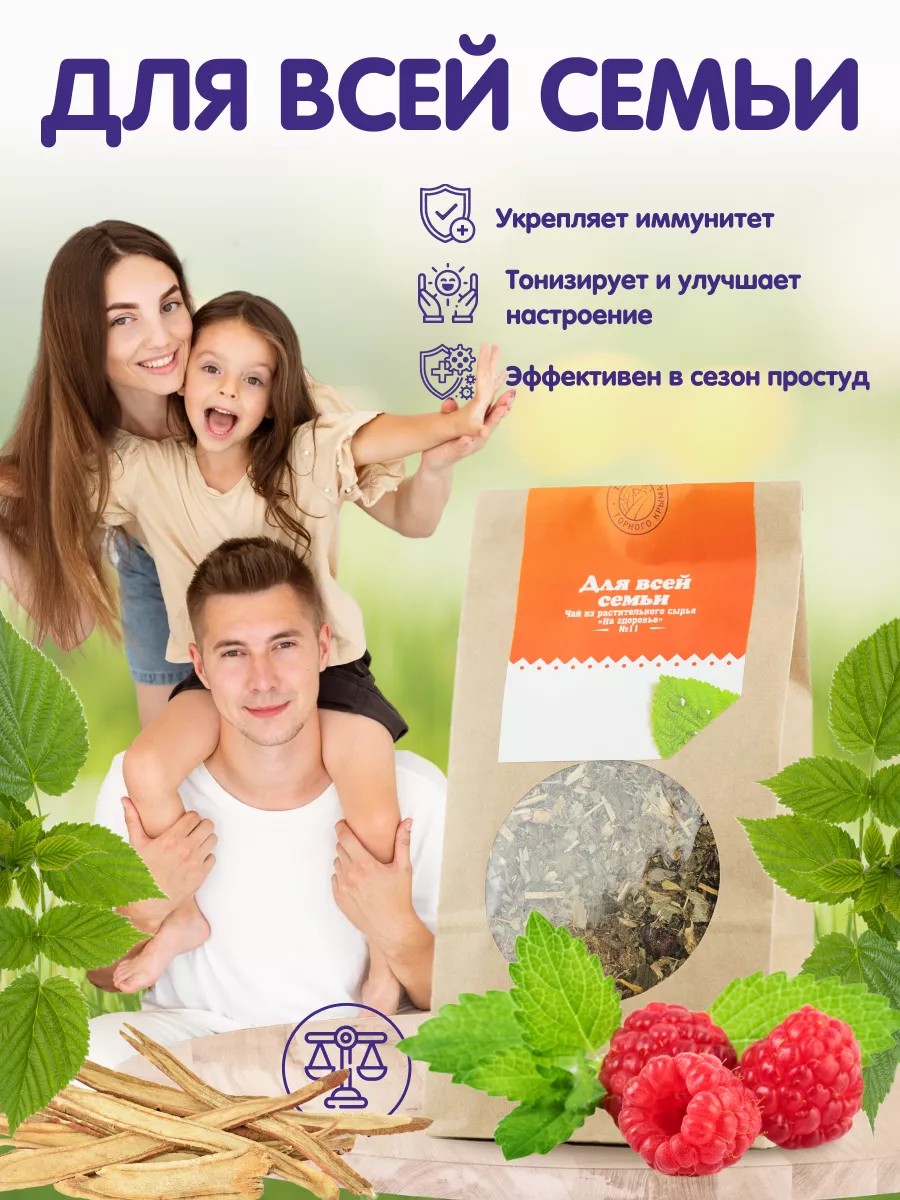 Чай для всей семьи - это натуральное средство, которое поможет вам позаботиться о своем здоровье и здоровье ваших близких. Этот травяной чай из крымских растений собран и высушен с особым вниманием к качеству и сохранению полезных свойств. Чай для всей семьи состоит из сбора листьев и трав, которые помогают укрепить иммунитет и способствуют оздоровлению организма.