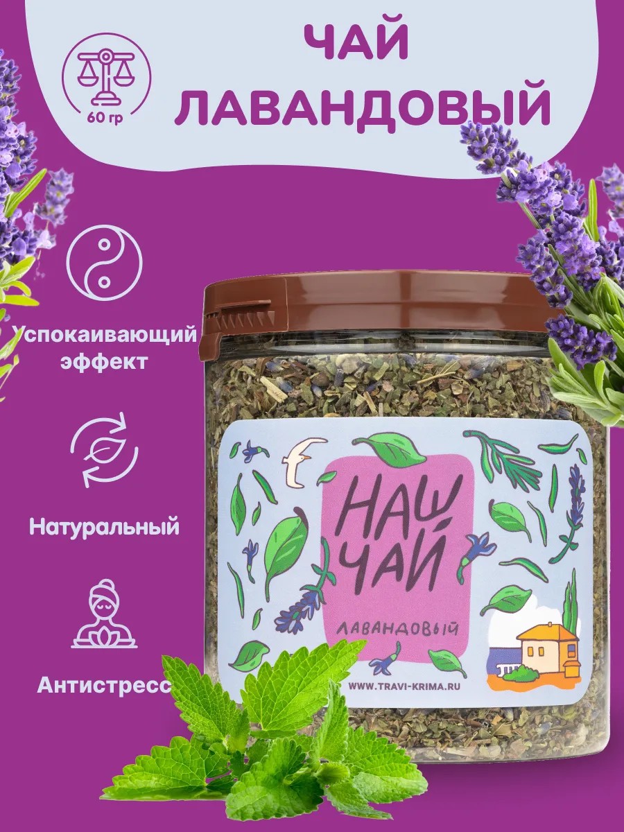 Травы Горного Крыма Лавандовый травяной чай в банке травяной Наш Чай 60г