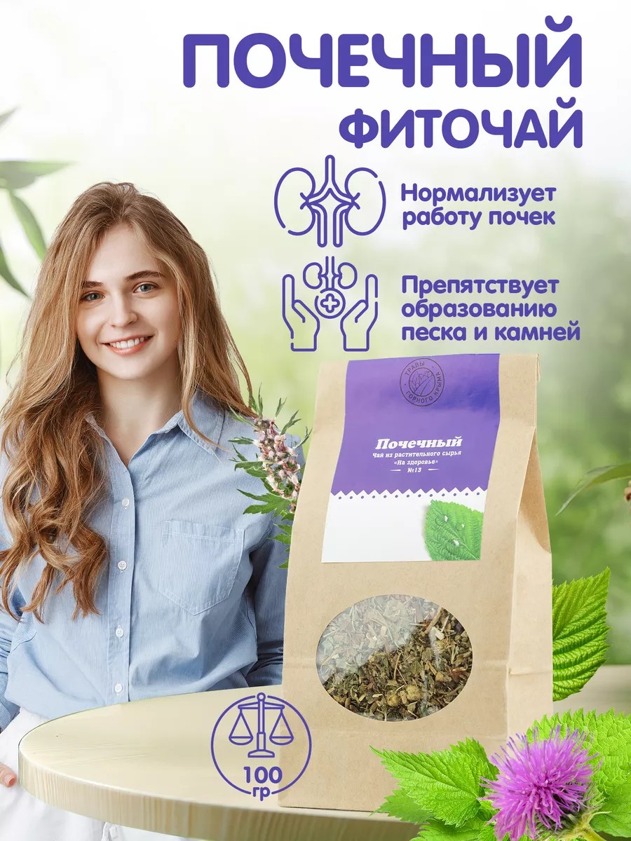 Почечный сбор - это чай, состоящий из сушеной крымской травы и листьев. Фиточай оказывает противовоспалительное, успокаивающее, болеутоляющее, мочегонное и общеукрепляющее действие. Почечный чай восстанавливает фильтрующую функцию почек. Растительная смесь для заваривания улучшает работу почек, мочеточников, мочевого пузыря и нормализует очистку организма от вредных веществ. Чайный напиток препятствует образованию камней и песка в почках и мочевом пузыре. Сбор трав для почек предупреждает развитие отеков, улучшает общее самочувствие и снижает побочное действие лекарств.