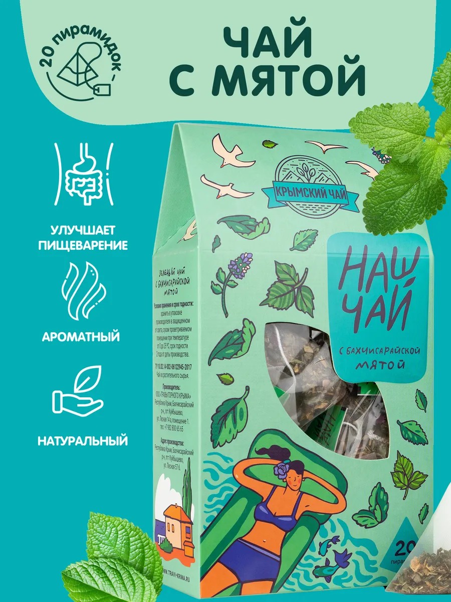 Natural tea with Crimean herbs and aromatic mint will energize you throughout the day and restore your strength after work. The minty drink relieves fatigue and headaches, relaxes and soothes. It has antiseptic properties and normalizes gastrointestinal function. A fragrant and healthy tea for every day. Peppermint soothes and normalizes digestion. Green leaf tea is a natural energizer and antioxidant. Blackberry leaf improves metabolism. Melissa is a gentle sedative. Tea rose imparts a unique aroma. This carefully selected combination will provide moments of pleasure during teatime with family, with parents and children, or with friends. Our Tea is a series of natural products for every day! Products under the Herbs of Mountain Crimea trademark are produced in an ecologically clean mountain region, at the foot of Mount Ai-Petri. Our company was founded in 2004 and has been collecting and packaging herbs for over 10 years. Only manual labor and environmentally friendly technologies are used to produce raw materials and prepare infusions. The products are certified in accordance with the technical regulations of the Eurasian Economic Union.