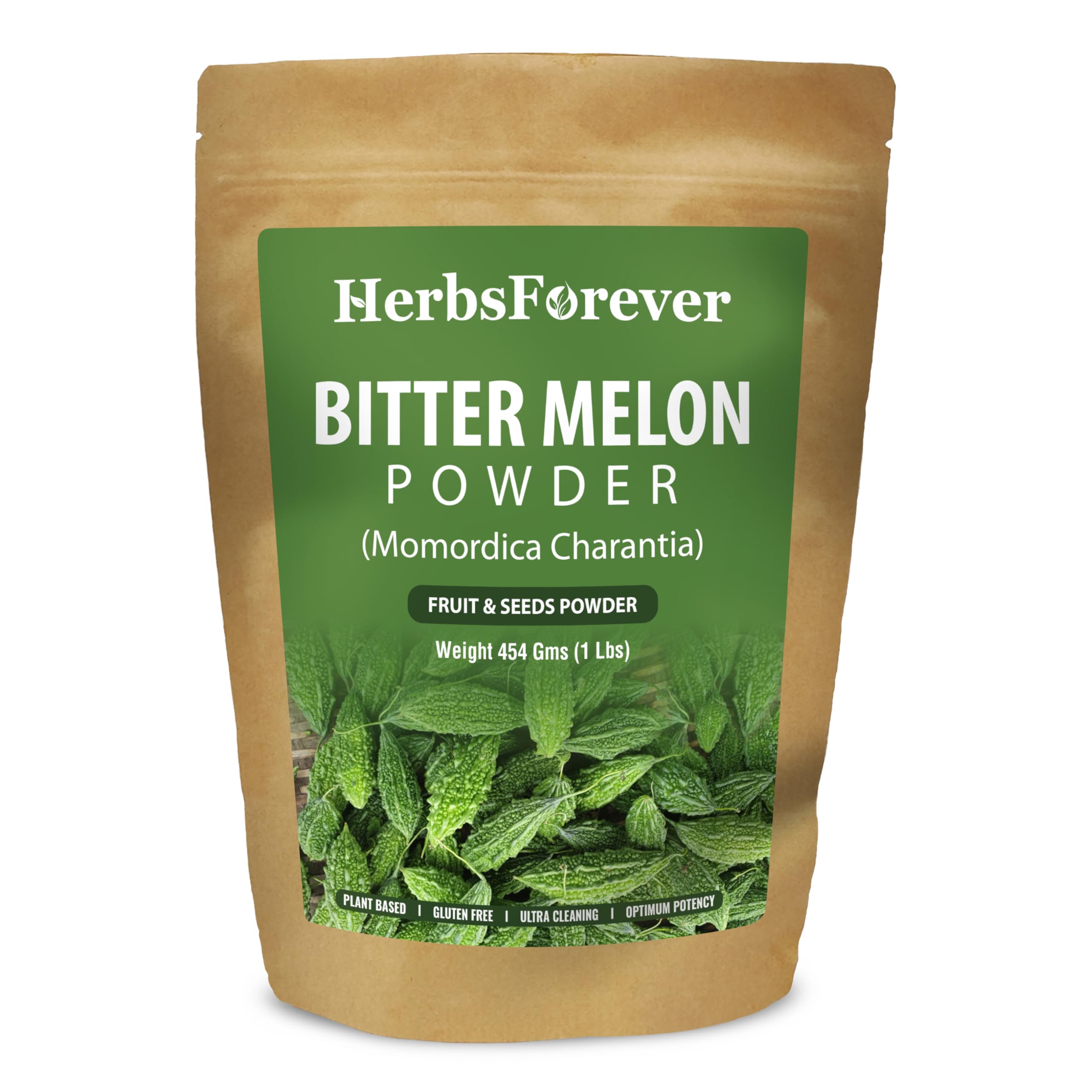 HerbsForever Bitter Melon Powder Fruit & Seeds- Carb Control Rich in Vitamin Mineral & Bitter - Wild Harvested -Non GMO Vegan- 2X Potency | Ultra Clean |Fresh Seasonal | Steam Sterilized |16oz-1LBS 454_GMS