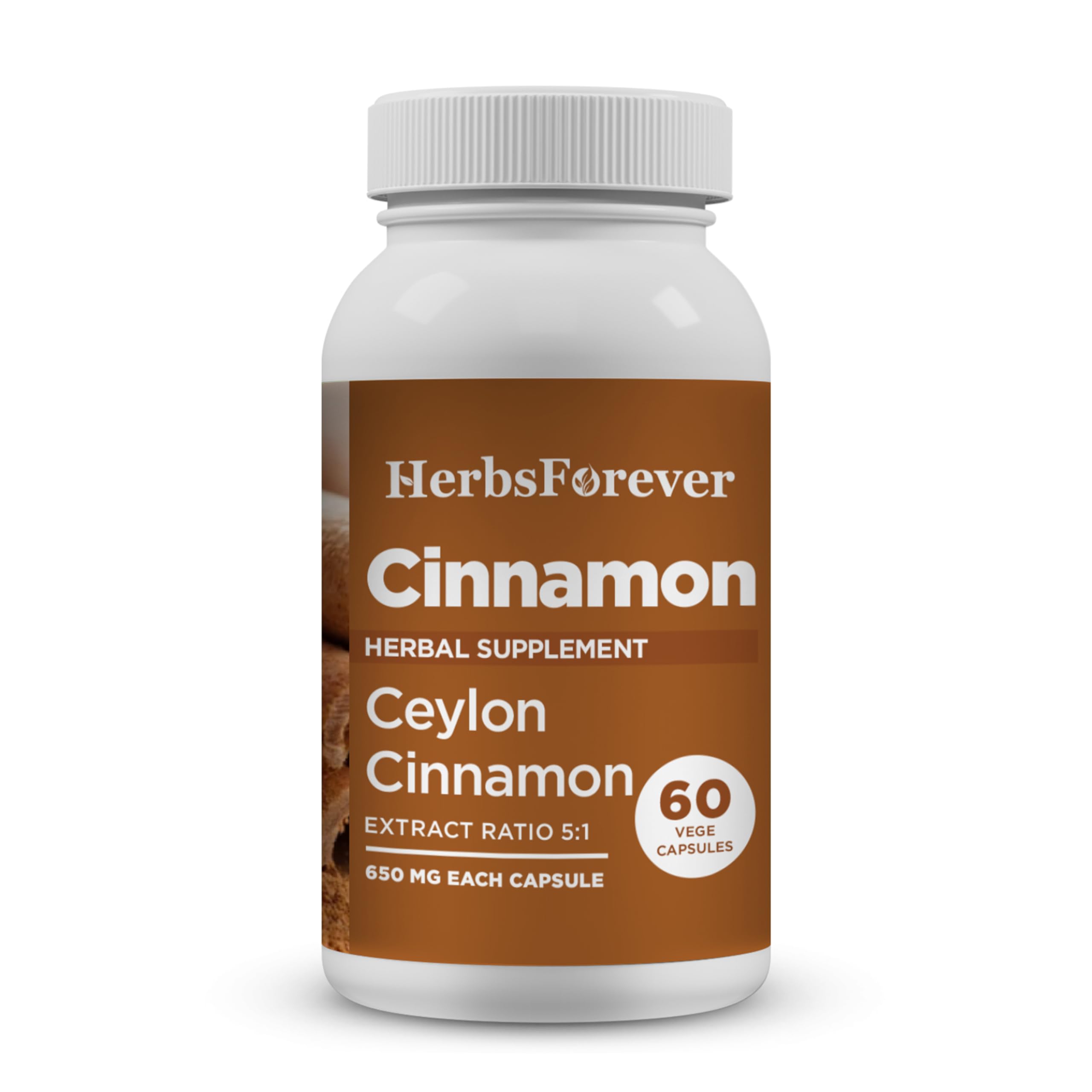 Herbsforever Ceylon Cinnamon Capsules Overall Wellness Support Supplement High Potency 800 Mg Extract 60 Vege Capsules
