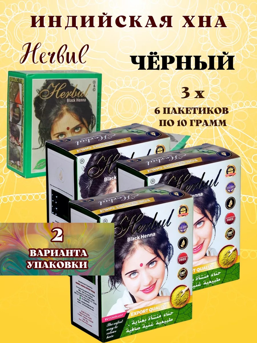 Herbul Хна индийская Черный, Herbul Black Henna, 3х60г