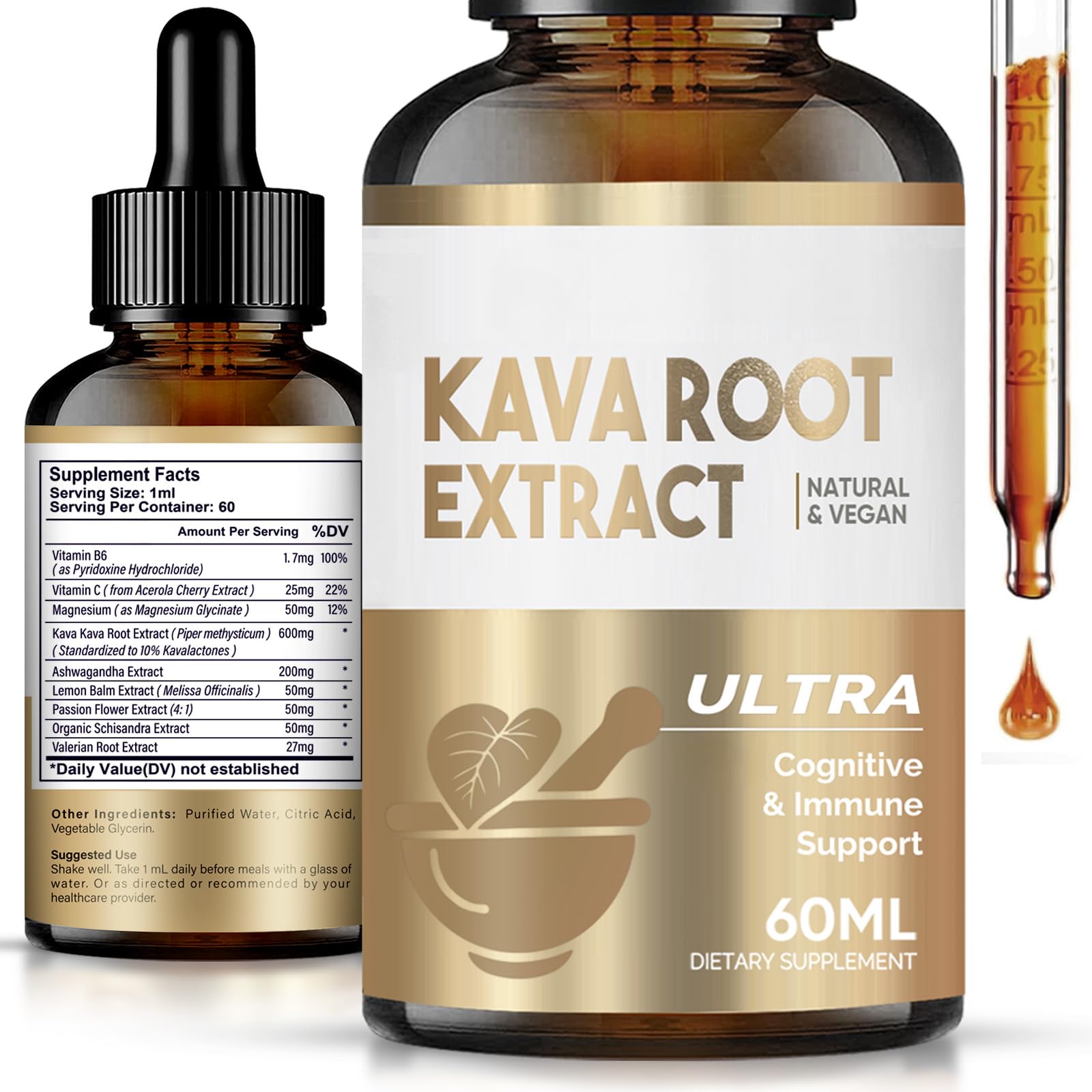 HerbX Kava Kava Root Extract Supplement Support Cognitive & Immune System Vegan Non-GMO High Concentration Kava 60ML