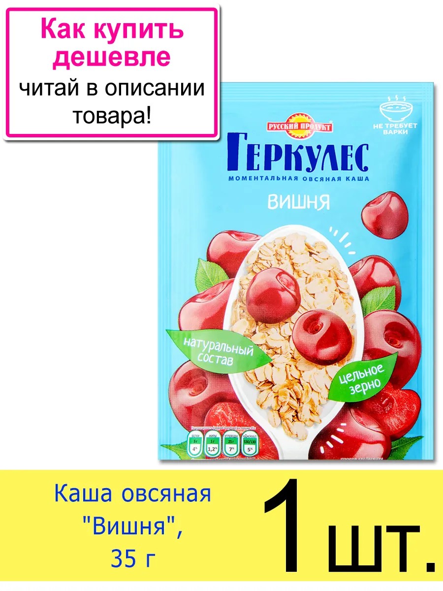 Овсяная каша быстрого приготовления Геркулес «Вишня» с молоком, в пакетика по 35 г. Это продукт, который обязательно должен быть в вашем арсенале для приготовления быстрых завтраков. Любители натуральных продуктов и полезной еды оценят эту кашу, которая содержит овес - один из наиболее питательных видов круп. Каждое утро вы можете наслаждаться восхитительным запахом вишни с молоком, открывая для себя новый уровень завтрака. Просто откройте пакетик с кашей и добавьте горячую воду - завтрак готов!