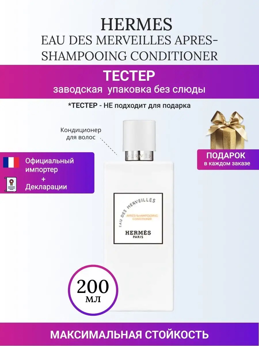 | Комплектация | Эрмес О де Мервиллес après-shampooing conditioner бальз-ополаскив 200 мл 1 флакон; унисекс кондиционер для волос HERMES кондиционер для волос женский 1флакон |