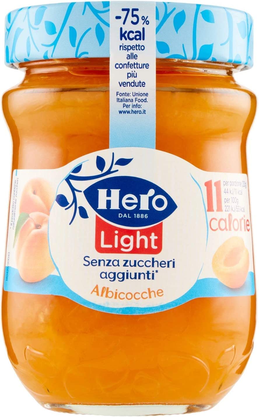 Hero Light Albicocche Lot de 3 confitures légères pour pain abricot Italie 280 g
