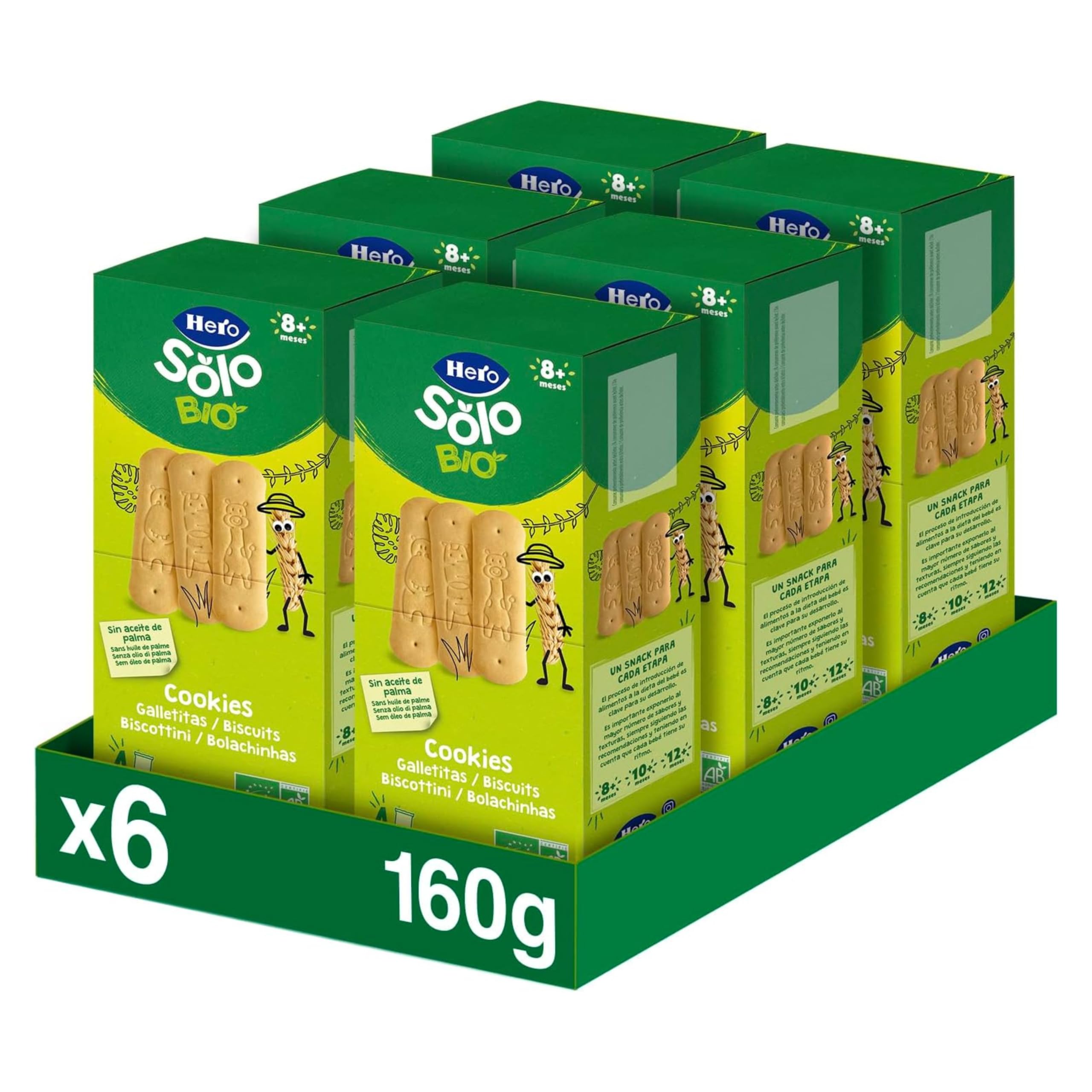: Discover nutritional excellence with Hero Solo Organic Biscuits. Made with wholegrain cereals and wheat flour, these delicious biscuits are a natural source of energy for your child. Crafted from 100 natural and organic ingredients, these biscuits are free from palm oil and additives, ensuring a healthy and safe diet from 8 months of age. Our commitment to quality is undeniable, as we adhere to Hero's rigorous quality standards at every stage of production. Each product guarantees excellent ingredients, nutritional balance, and quality controls, providing a reliable food option for your baby. With Hero Solo Organic Biscuits, your baby receives only the best: natural and organic ingredients that promote safe growth and development. These biscuits are a convenient option when you're on the go, thanks to their easy-to-carry packaging that fits perfectly in your handbag or backpack. For storage, we recommend keeping them in a cool, dry place. Once opened, they should be stored in an airtight container to preserve their freshness. These biscuits are versatile and can be dissolved in milk to make a delicious cereal porridge or added to fruit puree to boost their nutritional value. Offering them whole also encourages your baby's independence during feeding. Ingredients: Wheat flour (73.9 ), cane sugar (12.6 ), sunflower oil (9.4 ), diastatic wheat flour (2.9 ), raising agents (ammonium bicarbonate, sodium bicarbonate) (0.8 ), natural vanilla flavoring (0.4 ), natural olive extract ( 0.1 ), thiamine (vitamin B1) ( 0.1 ).STORAGE store in a cool, dry place. Once opened, store in an airtight container. Dissolve in milk to make a cereal porridge. Add to fruit puree for added nutritional value. Offer whole foods to encourage independence. CONVENIENT FEEDING Easy for babies to eat from 8 months. Easy-to-carry packaging, perfect for your bag or backpack, making it an ideal choice for when you're on the go with your baby. ORGANIC SNACK With Hero Solo Organic, your baby gets only the best: no palm oil and no additives. Each snack contains 100 natural ingredients for a healthy and safe diet. CRUNCHY AND LIGHT TEXTURE They offer a crunchy and light texture that makes every bite a delicious experience for your child, providing a fun and satisfying snack. ORGANIC INGREDIENTS Made from organically grown ingredients, produced from 100 organic biscuit-flavored cereals, they contain whole wheat flour, sunflower oil and vitamin B1.Description du produit Découvrez l'excellence nutritionnelle avec les biscuits Hero Solo BIO Pack Biscuits. À base de céréales et de farine de blé complète, ces délicieux biscuits sont une source naturelle d'énergie pour votre enfant. Fabriqués à partir d'ingrédients 100 naturels et biologiques, ces biscuits sont exempts d'huile de palme et d'additifs, ce qui garantit une alimentation saine et sûre dès l'âge de 8 mois. Notre engagement envers la qualité est indéniable, car nous suivons les normes rigoureuses de qualité Hero à chaque étape de la production. Chaque produit garantit l'excellence des ingrédients, l'équilibre nutritionnel et les contrôles de qualité, offrant ainsi une option alimentaire fiable à votre bébé. Avec les biscuits Hero Solo Bio, votre bébé ne reçoit que le meilleur : des ingrédients naturels et biologiques qui favorisent une croissance et un développement sûrs. Ces biscuits sont une option pratique lorsque vous êtes en déplacement, grâce à leur emballage facile à transporter qui s'adapte parfaitement à votre sac à main ou à votre sac à dos. Pour la conservation, nous recommandons de les garder dans un endroit frais et sec. Une fois ouverts, ils doivent être conservés dans une boîte hermétique pour préserver leur fraîcheur. Ces biscuits sont polyvalents et peuvent être dissous dans du lait pour obtenir une délicieuse bouillie de céréales ou ajoutés à une purée de fruits pour augmenter leur valeur nutritionnelle. Le fait de les proposer entiers favorise également l'autonomie de votre bébé pendant l'alimentation. Ingrédients Farine de BLE (73,9 ), sucre de canne (12,6 ), huile de tournesol (9,4 ), farine de BLE diastasique (2,9 ), agents levants (bicarbonate d'ammonium, bicarbonate de sodium) (0,8 ), arôme naturel de vanille (0,4 ), extrait naturel d'olive ( 0,1 ), thiamine (vitamine B1) ( 0,1 ).STOCKAGE A conserver dans un endroit frais et sec. Après ouverture, conserver dans un récipient hermétique. Dissoudre dans le lait pour préparer une bouillie de céréales. Ajouter à une purée de fruits pour lui donner une plus grande valeur nutritionnelle. Proposer des aliments entiers pour favoriser l'autonomie. ALIMENTATION PRATIQUE Facile à manger pour les bébés à partir de 8 mois. Emballage facile à transporter, parfait pour votre sac ou votre sac à dos, ce qui en fait un choix idéal pour les moments où vous êtes en déplacement avec votre bébé. SNACK BIOLOGIQUE Avec Hero Solo bio, votre bébé n'a que le meilleur : pas d'huile de palme et pas d'additifs. Chaque snack contient des ingrédients 100 naturels pour une alimentation saine et sûre. TEXTURE CROQUANTE ET LÉGÈRE Ils offrent une texture croquante et légère qui fait de chaque bouchée une expérience délicieuse pour votre enfant, lui procurant un en-cas amusant et satisfaisant. INGRÉDIENTS BIOLOGIQUES Issus de l'agriculture biologique, fabriqués à partir de céréales goût biscuits 100 biologiques, contiennent de la farine de blé complète, de l'huile de tournesol et de la vitamine B1.Hero Solo BIO - Biscuits Biologiques - 100 d'Ingrédients Naturels, Base de Céréales, Farine de Blé, sans Huile de Palme, à partir de 8 mois, 160gx6 pcs.