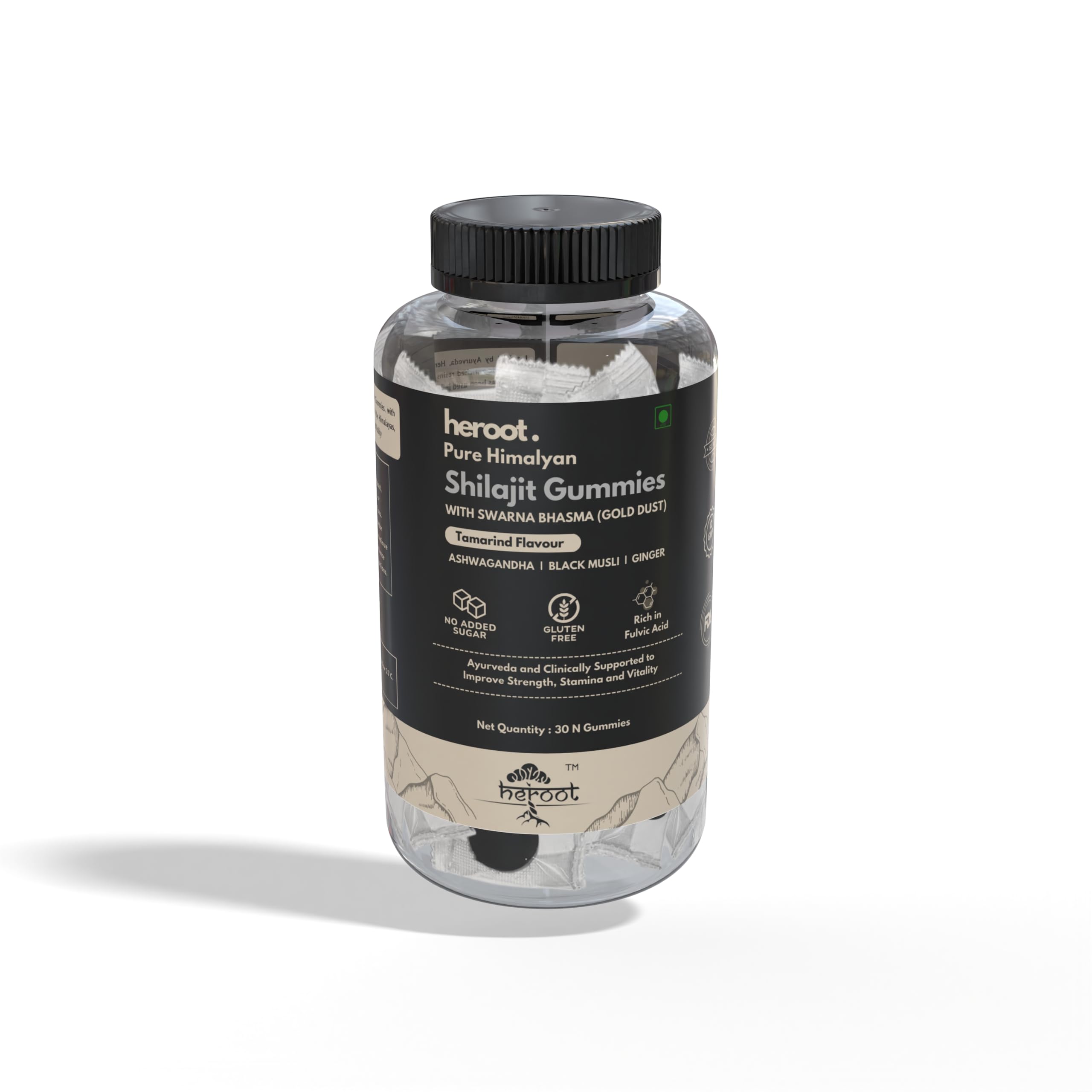 Unlock the ancient secrets of vitality with Heroot Organic Himalayan Shilajit Gold Gummies. Sourced directly from the pristine heights of the Himalayas at 18,000 feet above sea level, our Himalayan Shilajit Gold Gummies offer pure, gold-grade Shilajit in a delicious, easy-to-take form. Made for both men and women, these potent shilajit gold gummies are designed to support energy, stamina, mental clarity, and overall wellness naturally. Each gummy delivers 200mg of pure Shilajit infused with fulvic acid, an essential compound known for promoting nutrient absorption and detoxification. Fulvic acid helps amplify the benefits of Shilajit, aiding in energy production, reducing fatigue, supporting healthy aging, and promoting overall cellular function. Heroot Organic Himalayan Shilajit Gold Gummies come in an unflavored gummy form, offering 30 counts per pack, each carefully crafted with pure Shilajit for organic, non-GMO, and vegan benefits, and conveniently sized at 2 x 2 x 5.11 inches. Elevate your wellness journey with Heroot Organic Himalayan Shilajit Gold Gummies — pure, powerful, and naturally made to support your best self. Experience the ancient energy of the Himalayas in every bite!Wholistic Wellness: Each package of our Organic shilajit Gummies provides 30 gummies. Premium Formula, Maximum Efficacy :We make sure these delicious, bittersweet shilajit gummies are clean and pure. We purify the shilajit over 20 times using nano filters and then sun dry it for 60-80 days to maintain maximum potency. These delicious gummies are natural, organic, and third-party lab tested. Shilajit Premium Products: Himalayan quality minerals - Shilajit Resin Extract for making Golden Gummy Candy. It contains no heavy metals, no fillers and no harmful additives. It is made in its truest form with no added sugar, no cornstarch, no glucose syrup, no artificial colors or gum. It is completely vegan, natural, and non-GMO. Natural Shilajit Gummies: Our Shilajit Gummies are sourced from pure Himalayan quality ingredients. It contains pure, organic, gold grade shilajit from 18,000 feet above sea level.