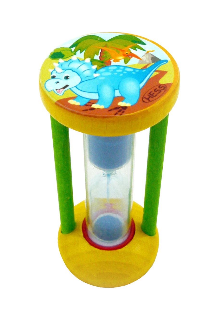 Hess wooden toys - so that children's eyes shine.As a small practical helper in the bathroom or on the changing table, this beautiful wooden tooth cleaning clock should not be missing.With it, it is much more fun for children to brushing your teeth.The timepiece from the dinosaurs product range has a size of approx. 3.5 x 3.5 x 8 cm and consists of a green-yellow wood bracket and an integrated hourglass with blue sand.The time is started by turning the tooth cleaning clock.If the sand is completely dragged down, the recommended minimum plastering time of about 2 minutes is over.The cute dinosaur image in happy colors ensures additional motivation and good mood, with which the tooth cleaning clock on the top is painted.Whether big, whether Klein - Hess Toys have to be easy. The Hess company, based in the Ore Mountains, stands for German craftsmanship and high -quality wooden toys.These are imaginative and colorful with attention to detail.Only local woods, such as beech and maple, are processed under environmentally friendly conditions in the manufacture.The toy is covered with vegan, water -based paint and salivated colors, which have been checked for harmlessness according to EN 12586/2007.All assembly work is carried out by hand, constant controls guarantee compliance with important safety regulations and consistently high quality.So that your child enjoys this toy, please note the following information: Wood is a natural material and should therefore not be exposed to moisture and UV radiation over a longer period of time, otherwise the wood can tear, swell and break.If your toy is dirty, you can wipe it off with a damp cloth.Please do not use sharp cleaning agents. Brand description Hess Holzfuys GmbH & Co. KG is a family -run company that designs and manufactures sustainable toys for babies and toddlers itself.In addition to products for the first months of life such as.B. pacifier chains and rattles, also practical articles for the children's room such asB. measuring slats, cloakrooms and door signs.Puzzle, board and table games, ball tracks and hempers ensure great game fun.With the funny mobile, wall and tooth cleaning clocks and money boxes, the learning fun is not neglected.Robust play equipment such asB. slides, sliding figures and knitting ladders promote the spirit of discovery.In addition, Hess has beautiful, elegant and unusual decoration, gift and Christmas items on offer- everyone here simply finds the right one for themselves and their loved ones. Set contains: 1 tooth cleaning clock More 100 percent made in Germany, craftsmanship and quality from the Ore Mountains - all assembly work is carried out by hand, each article has been checked for security.Robust and durable - beech and birch made from the local woods, covered with a saliva color and water lacquer.To comply with the recommended minimum cleaning time - the sand trickles through the glass for about 2 minutes, so that the child knows how long it has to brush your teeth.In a child -friendly design with dinosaur motif on the top - for motivation and as practical support in daily dental care.Lovingly designed rotatable tooth plastering clock consisting of a hourglass with blue sand in a glass capillary and a holder made of wood, size approx. 3.5 x 3.5 x 8 cm. Hess Holzspielzeug - damit Kinderaugen strahlen. Als kleiner praktischer Helfer im Badezimmer oder auf dem Wickeltisch darf diese wunderschöne Zahnputzuhr aus Holz nicht fehlen. Mit ihr macht Kindern das Zähneputzen gleich viel mehr Spaß. Der Zeitmesser aus der Produktreihe Dinosaurier hat eine Größe von ca. 3,5 x 3,5 x 8 cm und besteht aus einer grün-gelben Holzhalterung sowie einer integrierten Sanduhr mit blauem Sand. Durch Umdrehen der Zahnputzuhr wird die Zeit gestartet. Wenn der Sand vollständig nach unten gerieselt ist, ist die empfohlene Mindestputzzeit von etwa 2 Minuten um. Für zusätzliche Motivation und gute Laune sorgt das niedliche Saurierbild in fröhlichen Farben, mit dem die Zahnputzuhr auf der Oberseite bemalt ist. Ob groß, ob klein - Hess Spielzeug muss es einfach sein. Die Firma Hess mit Sitz im Erzgebirge steht für deutsche Handwerkskunst und hochwertige Spielwaren aus Holz. Diese sind mit Liebe zum Detail phantasievoll und farbenfroh gestaltet. Bei der Herstellung werden ausschließlich einheimische Hölzer, wie Buche und Ahorn unter umweltfreundlichen Bedingungen verarbeitet. Das Spielzeug ist mit veganem, wasserbasiertem Lack und speichelechten Farben überzogen, die auf Unbedenklichkeit nach EN 12586/ 2007 überprüft wurden. Alle Montagearbeiten werden von Hand ausgeführt, ständige Kontrollen garantieren die Einhaltung wichtiger Sicherheitsvorschriften und eine gleichbleibend hohe Qualität. Damit Ihr Kind viel Freude an diesem Spielzeug hat, beachten Sie bitte folgende Hinweise: Holz ist ein natürlicher Werkstoff und sollte daher nicht über einen längeren Zeitraum Feuchtigkeit und UV Strahlung ausgesetzt werden, da das Holz sonst reißen, aufquellen und kaputtgehen kann. Ist Ihr Spielzeug verschmutzt, können Sie es mit einem feuchten Tuch abwischen. Bitte verwenden Sie keine scharfen Reinigungsmittel. MARKENBESCHREIBUNG Die Hess Holzspielzeug GmbH & Co. KG ist ein familiengeführtes Unternehmen, welches nachhaltiges Spielzeug für Babys und Kleinkinder selbst entwirft und fertigt. Das Sortiment umfasst neben Produkten für die ersten Lebensmonate wie z. B. Schnullerketten und Rasseln, auch praktische Artikel für das Kinderzimmer wie z. B. Messlatten, Garderoben und Türschilder. Für großes Spielvergnügen sorgen Puzzle, Brett- und Tischspiele, Kugelbahnen und Hampelmänner. Mit den lustigen Mobilen, den Wand- und Zahnputzuhren und Spardosen kommt auch der Lernspaß nicht zu kurz. Robuste Spielgeräte wie z. B. Rutscher, Schiebefiguren und Strickleitern fördern den Entdeckergeist. Zudem hat Hess wunderschöne, elegante wie ausgefallene Dekorations-, Geschenk- und Weihnachtsartikel im Angebot – hier findet einfach