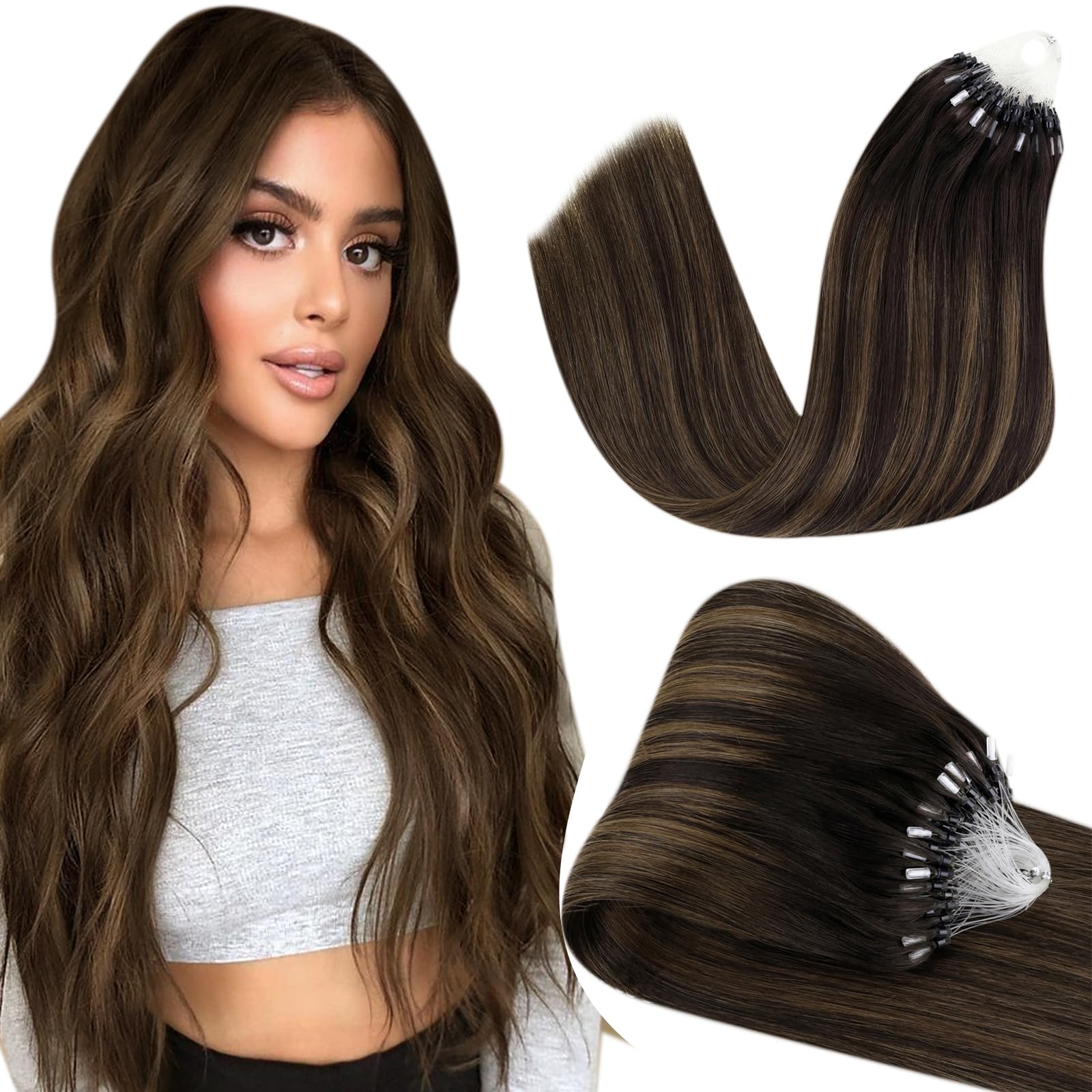 ?Hetto micro loop hair extensions hair extensions are suitable for most hair types. Suitable for fine and thick hair types, change the color immediately and can have different hair sizes for different occasions. Hair material: 100% human hair Hair color: dark brown highlights strawberry blonde Hair length: 18 inches Advantages: 1. Durable: Depending on the Art 12-16 weeks or longer, the hair can keep care. 2. Healthy: Micro loop hair extensions are professionally used with micror rings.No heat, this is a healthy method that is harmless to your hair. 3. Not detectable: the microring are tiny, they are practically not detectable. 4. 100% Remy Real hair, Top 7a, soft and silky, can be ruffled, smoothed, washed. Functions: 1. For highlights: This type of hair is ideal to add fast highlights without the harmful effects of bleaching.2. For pieces: and strands are 0.5 g or 1 g.You are a good choice if you need finer highlights. 3. For full head: You can choose a full head of these hair extensions for celebrity style, glamorous length and full volume. A notice: 1. The hair can be colored a deeper color.Please do not bleach. 2. Prepare warm water to wash the hair with shampoo, and then rinse it out of the extensions. 3. Apply the conditioner and comb your hair and then wash. We very much appreciate your opinion on our product.If you have any questions about our products, please feel free to contact us.We will always do our best to help you.? longer lifespan depends on good care.Micro Hair Extensions is silky, shiny and smooth and still works well even after washing and styling.Please use a neutral, mild shampoo to care for the hair.Please do not use hairdryers and of course let it dry.? We recommend choosing a color based on your original hair color.Color differences can occur under different screens and light conditions.If you are unsure which color you should choose, we offer you free color comparison services.? Comfortable to carry.Comb your hair in the morning and in the evening, you can moisten the comb before combing your hair with water, comb it from the tip of the hair and then comb up.? Invisible. The microbeads are silicone materials.Use of a microring (outer diameter: approx. 0.5 cm/0.2 inches; inner diameter: approx. 0.3 cm/0.12 inches; height: approx. 0.3 cm/0.12 inches).The micropers are small and make the hair extensions more detectable, give a natural look.Has no glue, does not have to be heated.It has no damage to our hair.? Hetto micro ring extensions real hair weight: 50g.Available in 12-22 inches, 1 g/strand, 50 g/set (12 inches corresponds to 0.8 g/strand).We recommend 2-3 packs to increase the volume and 3-4 packs to extend the length.If you want to add length and volume, we recommend more than 5 sentences. Please note that the longer hair would be thinner. ?Hetto Micro Loop Haarverlängerungen Haarverlängerungen sind für die meisten Haartypen geeignet. Geeignet für feine und dicke Haartypen, ändert sofort die Farbe und kann für verschiedene Anlässe unterschiedliche Haaraussehen haben. Haarmaterial: 100% menschliches Haar Haarfarbe: Dunkelbraune Highlights Erdbeerblond Haarlänge: 18 Zoll Vorteile: 1. Haltbar: Das Haar kann je nach Art 12-16 Wochen oder länger halten Pflege dafür. 2. Gesund: Micro Loop Haarverlängerungen werden professionell mit Mikroringen angewendet. Keine Hitze, dies ist eine gesunde Methode, die für Ihr Haar harmlos ist. 3. Nicht nachweisbar: Die Mikroringe sind winzig, Sie sind praktisch nicht nachweisbar. 4. 100% Remy Echthaar, Top 7A, weich und seidig, Kann gekräuselt, geglättet, gewaschen werden. Funktionen: 1. Für Highlights : Diese Art von Haar ist ideal, um schnelle Glanzlichter ohne die schädlichen Auswirkungen des Bleichens hinzuzufügen. 2. Für Stück: Und Strähnen sind 0,5 g oder 1 g. Sie sind eine gute Wahl, wenn Sie feinere Glanzlichter benötigen. 3. Für vollen Kopf: Sie können sich entscheiden Ein voller Kopf dieser Haarverlängerungen für Promi-Stil, glamouröse Länge und volles Volumen. Hinweis: 1. Das Haar kann gefärbt werden eine tiefere Farbe. Bitte nicht bleichen. 2. Bereiten Sie warmes Wasser vor, um das Haar mit Shampoo zu waschen, und spülen Sie es dann aus den Extensions aus. 3. Conditioner auftragen und das Haar kämmen und dann waschen. Wir schätzen Ihre Meinung zu unserem Produkt sehr. Wenn Sie Fragen zu unseren Produkten haben, können Sie sich gerne an uns wenden. Wir werden immer unser Bestes tun, um Ihnen zu helfen.? Längere Lebensdauer hängt von guter Pflege ab. Micro Hair Extensions ist seidig, glänzend und glatt und funktioniert auch nach dem Waschen und Stylen noch gut. Bitte verwenden Sie ein neutrales, mildes Shampoo, um das Haar zu pflegen. Bitte verwenden Sie keine Haartrockner und lassen Sie es natürlich trocknen. ? Wir empfehlen Ihnen, eine Farbe basierend auf Ihrer ursprünglichen Haarfarbe zu wählen. Unter verschiedenen Bildschirmen und Lichtverhältnissen kann es zu Farbunterschieden kommen. Wenn Sie unsicher sind, welche Farbe Sie wählen sollen, bieten wir Ihnen kostenlose Farbabgleichsdienste. ? Bequem zu tragen.Es wird empfohlen, jede Woche ätherische Öle zur Tiefenpflege zu verwenden und die Haarspitzen regelmäßig jeden Monat zu kürzen. Kämmen Sie Ihre Haare morgens und abends, Sie können den Kamm vor dem Kämmen Ihrer Haare mit Wasser befeuchten, ihn von der Haarspitze aus kämmen und dann nach oben kämmen. ?Unsichtbar.Die Microbeads sind Silikonmaterialien. Verwendung eines Mikrorings (Außendurchmesser: ca. 0,5 cm/0,2 Zoll; Innendurchmesser: ca. 0,3 cm/0,12 Zoll; Höhe: ca. 0,3 cm/0,12 Zoll). Die Mikroperlen sind klein und machen die Haarverlängerungen mehr nicht nachweisbar, geben ein natürliches Aussehen.Bequem zu tragen. Hat keinen Kleber, muss nicht erhitzt werden. Es hat keinen Schaden an unserem Haar. ?Hetto Micro Ring Extensions Echthaar Gewicht: 50g. Erhältlich in 12-22 Zoll Länge, 1 g/Strang, 50 g/Set (12 Zoll entspricht 0,8 g/Strang). Wir empfehlen 2-3 