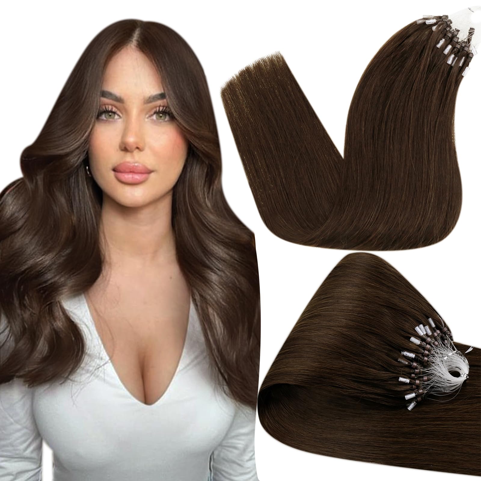 Longer lifespan depends on good care.Micro Hair Extensions is silky, shiny and smooth and still works well even after washing and styling.Please use a neutral, mild shampoo to care for the hair.Please do not use hairdryers and of course let it dry.We recommend choosing a color based on your original hair color.Color differences can occur under different screens and light conditions.If you are unsure which color you should choose, we offer you free color comparison services.Comfortable to carry.Comb your hair in the morning and in the evening, you can moisten the comb before combing your hair with water, comb it from the tip of the hair and then comb up.Invisible. The microbeads are silicone materials.Use of a microring (outer diameter: approx. 0.5 cm 0.2 inches inner diameter: approx. 0.3 cm 0.12 inches height: approx. 0.3 cm 0.12 inches).The micropers are small and make the hair extensions more detectable, give a natural look.Has no glue, does not have to be heated.It has no damage to our hair.Hetto micro ring extensions real hair weight: 50g.Available in 12-22 inches, 1 g strand, 50 g set (12 inches corresponds to 0.8 g strand).We recommend 2-3 packs to increase the volume and 3-4 packs to extend the length.If you want to add length and volume, we recommend more than 5 sentences. Please note that the longer hair would be thinner.Längere Lebensdauer hängt von guter Pflege ab. Micro Hair Extensions ist seidig, glänzend und glatt und funktioniert auch nach dem Waschen und Stylen noch gut. Bitte verwenden Sie ein neutrales, mildes Shampoo, um das Haar zu pflegen. Bitte verwenden Sie keine Haartrockner und lassen Sie es natürlich trocknen. Wir empfehlen Ihnen, eine Farbe basierend auf Ihrer ursprünglichen Haarfarbe zu wählen. Unter verschiedenen Bildschirmen und Lichtverhältnissen kann es zu Farbunterschieden kommen. Wenn Sie unsicher sind, welche Farbe Sie wählen sollen, bieten wir Ihnen kostenlose Farbabgleichsdienste. Bequem zu tragen.Es wird empfohlen, jede Woche ätherische Öle zur Tiefenpflege zu verwenden und die Haarspitzen regelmäßig jeden Monat zu kürzen. Kämmen Sie Ihre Haare morgens und abends, Sie können den Kamm vor dem Kämmen Ihrer Haare mit Wasser befeuchten, ihn von der Haarspitze aus kämmen und dann nach oben kämmen. Unsichtbar.Die Microbeads sind Silikonmaterialien. Verwendung eines Mikrorings (Außendurchmesser: ca. 0,5 cm 0,2 Zoll Innendurchmesser: ca. 0,3 cm 0,12 Zoll Höhe: ca. 0,3 cm 0,12 Zoll). Die Mikroperlen sind klein und machen die Haarverlängerungen mehr nicht nachweisbar, geben ein natürliches Aussehen.Bequem zu tragen. Hat keinen Kleber, muss nicht erhitzt werden. Es hat keinen Schaden an unserem Haar. Hetto Micro Ring Extensions Echthaar Gewicht: 50g. Erhältlich in 12-22 Zoll Länge, 1 g Strang, 50 g Set (12 Zoll entspricht 0,8 g Strang). Wir empfehlen 2-3 Packungen, um das Volumen zu erhöhen, und 3-4 Packungen, um die Länge zu verlängern. Wenn Sie Länge und Volumen hinzufügen möchten, empfehlen wir mehr als 5 Sätze.Bitte beachten Sie, dass das längere Haar dünner wäre.Hetto Microring Extensions Echthaar Braun Microring Extensions Remy Microring Haarverlangerung Echthaar Microring Extensions Echthaar Microring Echthaar Extensions Dunkelbraun 4 30cm 40g 30cm 3-1 MR 4