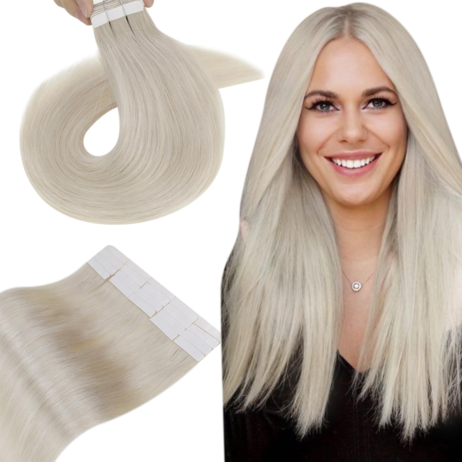 ? Friendly tips: Our seamless hair extensions are well packaged, easy to transport and can be used as travel equipment.But don't take your hair with you to play in sea water or swimming pools, high salt and chlorine content will seriously impair the life of the hair and break your hair.? Ready for re-styling: Band echo hair can be colored, lured or smoothed in order to get any desired style.Remember that you can only color light to dark colors.Bleaching is not recommended.? Specifications: The length is 12-22 inches.Specifically 12/14 inch-40 g, 16-22 inch-50 g.Figure color 12 inch-40 g 14-22 inch-50 g.Each pack contains 20 tablets.2-3 packs for a full head.? simple and convenient: easy attach and remove tape in extensions.Tape-in-extensions can be used repeatedly with replacement tape.Comfortable, strong, invisible.If the adhesive tape is stored in hair extensions for too long or in the heat period or the elevator method is improper, the adhesive loses stickiness.If this is the case with you, and we will immediately send you spare bands.? Natural real hair: Hetto tape in Hair Extensions made of 100% real real hair.Soft, natural, shiny, fits your own hair well.? Freundliche Tipps: Unsere nahtlosen Haarverlängerungen sind gut verpackt, leicht zu transportieren und können als Reiseausrüstung verwendet werden. Aber nehmen Sie Ihr Haar nicht mit, um in Meerwasser oder Schwimmbädern zu spielen, hoher Salz- und Chlorgehalt wird die Lebensdauer des Haares ernsthaft beeinträchtigen und das Haar brechen. ? Bereit zum Re-Stylen: Band-Echthaar kann gefärbt, gelockt oder geglättet werden, um jeden gewünschten Stil zu erhalten. Denken Sie daran, dass Sie nur helle bis dunkle Farben färben können. Bleichen wird nicht empfohlen. ?Spezifikationen: Die Länge beträgt 12-22 Zoll. Einfarbig 12/14 Zoll-40 g, 16-22 Zoll-50 g. Hervorhebungsfarbe 12 Zoll-40 g 14-22 Zoll-50 g. Jede Packung enthält 20 Tabletten. 2-3 Packungen für einen vollen Kopf. ? Einfach und bequem: Einfaches Anbringen und Entfernen von Tape in Extensions. Tape-In-Extensions können mit Ersatztape wiederholt verwendet werden. Bequem, stark, unsichtbar. Wenn das Klebeband in Haarverlängerungen zu lange oder in der Hitzeperiode gelagert wird oder die Aufbringungsmethode unsachgemäß ist, verliert der Klebstoff an Klebrigkeit. Wenn dies bei Ihnen der Fall ist, und wir senden Ihnen umgehend Ersatzbänder zu. ? Natürliches Echthaar: Hetto Tape In Hair Extensions aus 100% echtem Echthaar. Weich, natürlich, glänzend, passt gut zu Ihrem eigenen Haar.Hetto Tape-in Extensions Echthaar Blond Glatt Echthaar Tapes Extensions Haarverlängerungen Tape Extensions Echthaar Tapes Remy Extensions Tape Weiß Blond Platinblond #60 40cm 50g 40 CM 1-1 #60 Blond