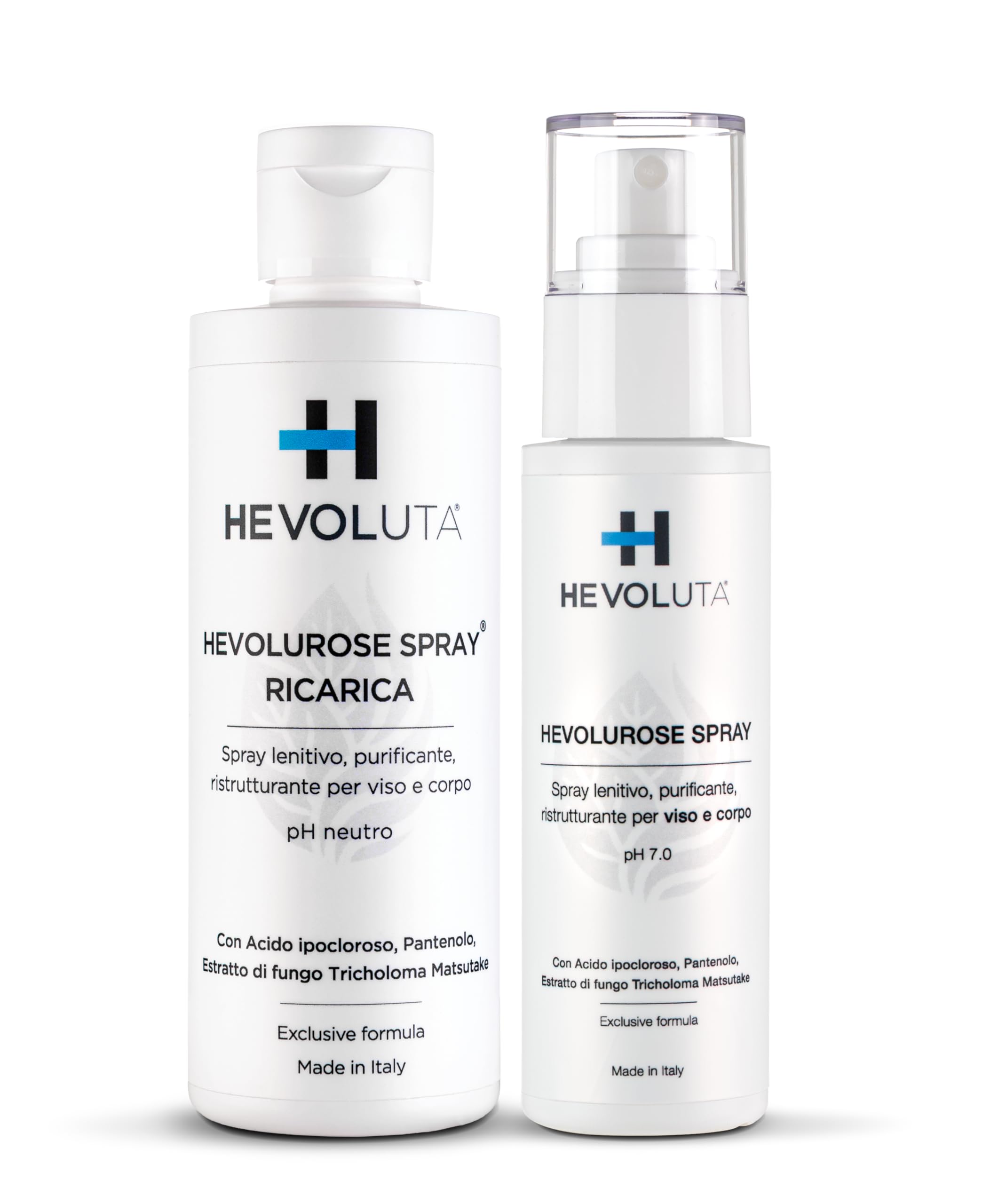 Made in Italy, quality guaranteed: Dermatologically tested on sensitive skin, alcohol-free, silicone-free, and preservative-free. Certified for maximum safety and quality. Easy to use: Spray on the face, body, or hands after cleansing or sun exposure for instant, residue-free relief. Natural and safe ingredients: Based on hypochlorous acid, panthenol, ergotionine, and natural Tricholoma Matsutake extracts for complete protection. Firming and purifying: Refreshes and purifies reddened and inflamed skin, preventing redness and irritation on all occasions. Immediate benefits: Hevolurose spray soothes and calms irritated skin, ideal for sunburn, acne, and insect bites.Hevolurose Spray 100 ml avec recharge, apaisant et rafraîchissant, soulagement pour peau sensible, acné, coups de soleil et piqûres d'insectes, avec acide hypochloreux, hydratant (spray recharge)Fabriqué en Italie, qualité garantie : produit testé dermatologiquement sur les peaux sensibles, sans alcool, sans silicone et conservateur. Certifié pour une sécurité et une qualité maximales. Facile à utiliser : vaporiser sur le visage, le corps ou les mains après le nettoyage ou après l'exposition au soleil pour un soulagement instantané sans résidus. Ingrédients naturels et sûrs : à base d'acide hypochloreux, panthénol, ergotionine, et extraits naturels de Tricholoma Matsutake pour une protection complète. Raffermissant et purifiant : rafraîchit et purifie la peau rougie et enflammée, prévenant les rougeurs et les irritations en toutes occasions. Avantages immédiat : le spray Hevolurose apaise et calme la peau irritée, idéal pour les brûlures du soleil, l'acné et les piqûres d'insecte.