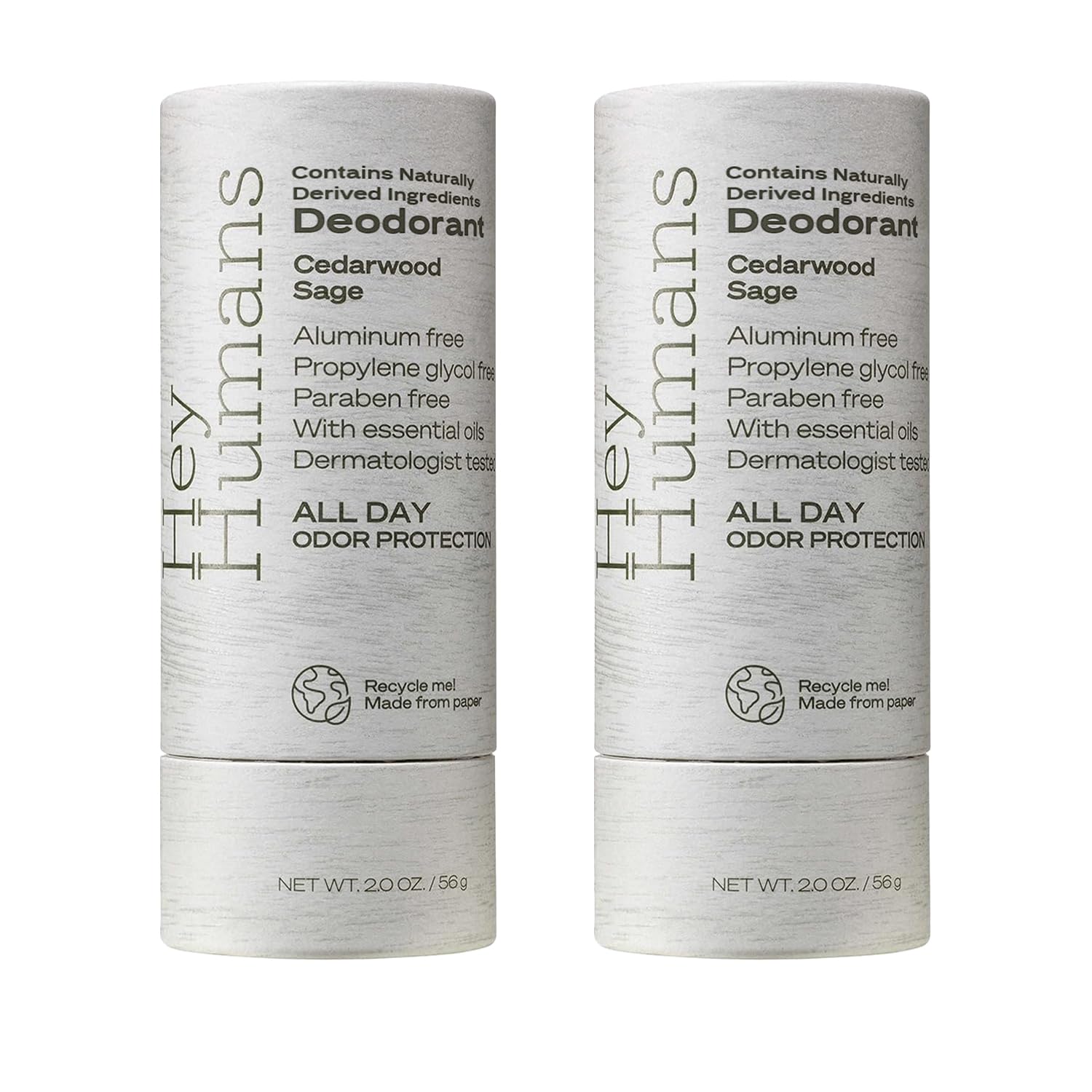 Hey Humans Deodorant Aluminum Free Deodorant for Women and Men Contains Naturally Derived Ingredients All Day Odor Control Refreshing Deodorant Essential Oils Cedarwood Sage Cedarwood Sage 2 Ounce (Pack of 2)