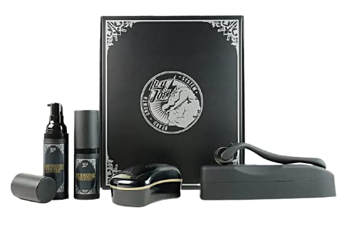 20-wöchige klinische Studiergebnisse überprüfen die Erhöhung der Dichte um mehr als 55 %, dickere Gesichtsbehaarung, neue sichtbare Haare (bei 94 % der Männer) und sichtbar stärkere Bart. Cleaning Solution - Entwickelt, um Ihren Deluxe Roller effektiv zu reinigen und zu desinfizieren und eine sichere und wirksame Behandlung von Anfang bis Ende zu genießen - Inhalt 15 ml,Beard Brush - Innovatives Design basierend auf einer speziellen Struktur mit flexiblen Zinken und 3 verschiedenen Längen. Premium Elixir - enthält mehr als 99% Inhaltsstoffe natürlichen Ursprungs - Formel enthält pflanzliche Stammzellen, die in Kombination mit Deluxe Roller das Wachstum Ihres Bartes ""wachen"" die schlafenden Follikel - Inhalt 30 ml. Deluxe Roller – Dermaroller, der die Stimulation der Haarfollikel, Erhöhung von Kollagen und Blutfluss hervorruft. 540 Nadeln aus Titan in chirurgischer Qualität, die Tausende von mikroskopischen Kanälen auf der Haut erzeugen, die das Eindringen des Wirkstoffs Premium Elixir erleichtern. Ein revolutionäres und effektives Bartwachstumssystem, das Ihrem Bart mehr Dichte verleiht und die dünn bevölkerten Bereiche füllt, die Ihren Bart nicht gleichmäßig und gesund aussehen lassen.