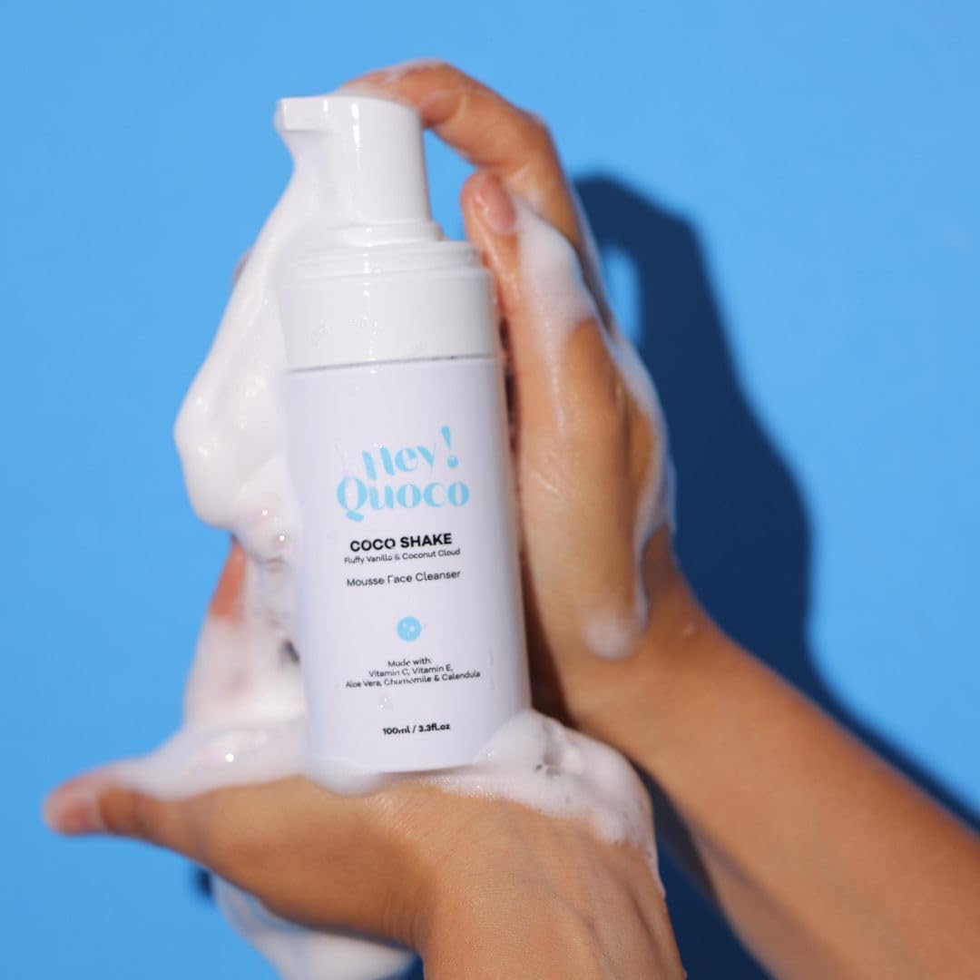 Indulge in the luxurious cleansing experience of Hey! Quoco's Coco Shake Mousse Face Cleanser. This delightful 3.3fl.oz facial cleanser transforms into a cloud-like foam that gently lifts away dirt and impurities while treating your skin to a vanilla and coconut sensory journey. The lightweight formula is enriched with skin-loving ingredients including Vitamin C, Vitamin E, Aloe Vera, Chamomile, and Calendula to help soothe and hydrate your complexion. Perfect for daily use, this mousse cleanser creates a soft, cushiony lather that effectively cleanses without stripping your skin's natural moisture. The innovative pump dispenser delivers the perfect amount of product each time, making your skincare routine both effective and enjoyable. Whether you're starting your day or winding down in the evening, this gentle cleanser leaves your skin feeling fresh, clean, and perfectly balanced.