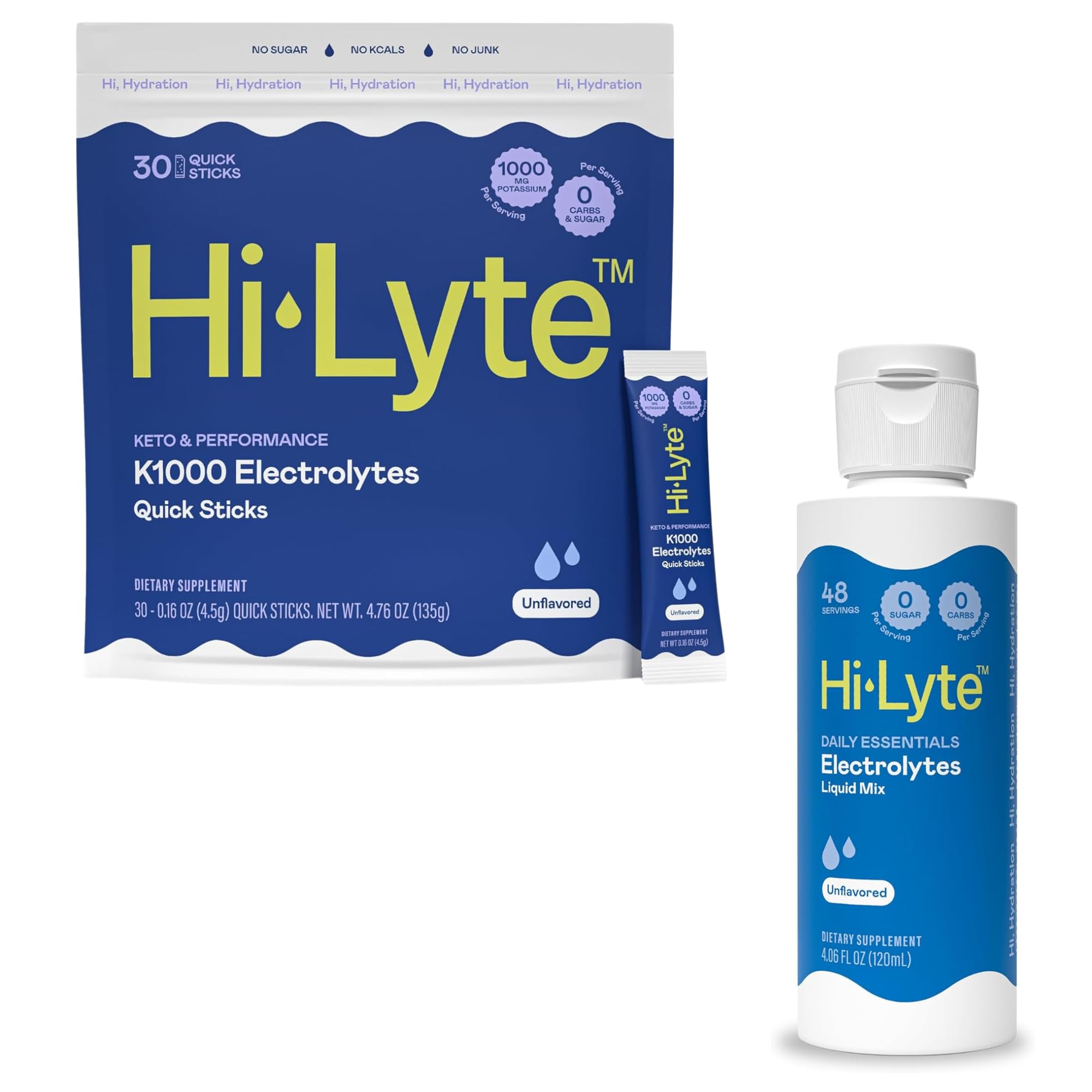 NATURAL MINERAL TASTE – This unflavored concentrate imparts a mild, salty mineral taste to water. If you're sensitive to the mineral flavor, consider adding a squeeze of lemon or incorporating it into juice, a smoothie, or sparkling water. With zero calories, zero sugar, and zero carbs, it seamlessly integrates into your daily routine. EASY CLEAN HYDRATION – Transform a 16 oz glass of water into a replenishing sports drink with just 1 4 tsp (or 12 drops per 8 oz) of Hi-Lyte electrolyte concentrate. One Hi-Lyte Liquid Electrolyte supplement bottle equates to a whopping 96 sports electrolyte drinks (one serving 3 electrolyte drinks), providing both superior hydration and savings for your wallet. Shake well before use. Use as directed. CONVENIENT TRAVEL SIZE HYDRATION – Whether you are dealing with electrolytes lost due to sweat, exercise, day-to-day activities, sickness or any other situation our hydration drops have you covered. Formulated to perfection for a Keto diet as well, this 4.06 oz bottle offers 48 servings and effortlessly fits into backpacks, purses, gym bags, or the palm of your hand. Perfect for on-the-go situations and exercise and morning routines. PEAK HYDRATION CELLULAR ENERGY - Electrolytes play a crucial role in supporting cellular energy, muscle function, and nerve health. Our potassium-rich electrolyte powder may help rejuvenate cellular energy, ensuring you stay active and energetic. This soluble, performance electrolyte serving delivers 1,000mg of potassium, helping you reach the recommended daily intake of 4,700mg of potassium citrate. KETO ELECTROLYTE SUPPLEMENT – Keto K1000 electrolyte powder is a high potassium supplement designed to help with hydration, increase cellular energy, and beat the Keto flu. With 1,000mg of potassium, this trace mineral blend is tailor-made for keto and intermittent fasting enthusiasts. Simply mix one scoop into 16 oz of water. Avoid exceeding one serving every four hours or three servings a day. If you're new to the product, start with half a serving to ensure tolerance. Use as directed.